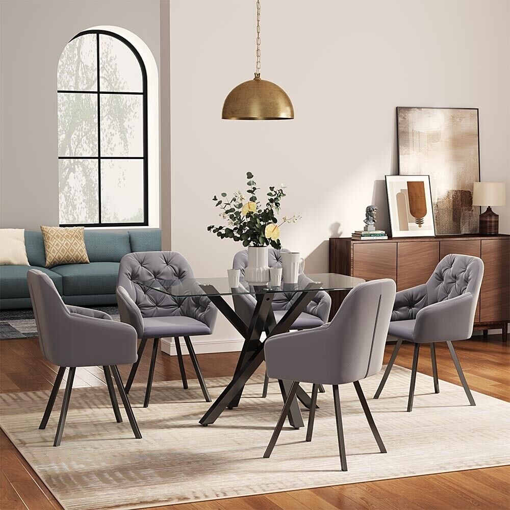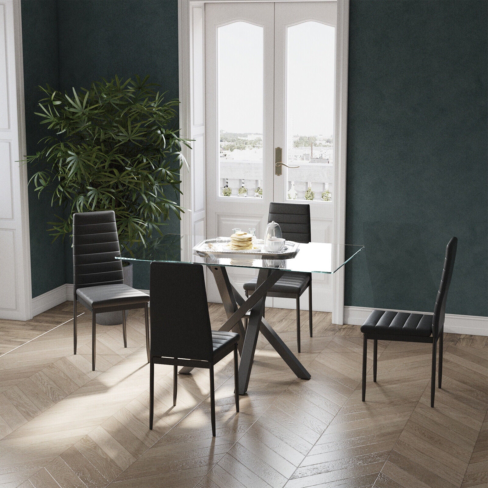 Large Rectangle Clear Tempered Glass Dinner Table for Living Dining Room Kitchen