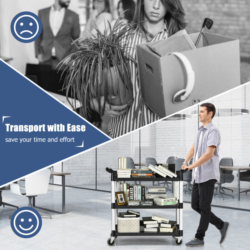 Large Rolling Kitchen Storage Trolley Cart Heavy Duty 3-Tier Service Cart 150KG
