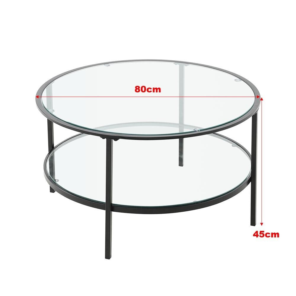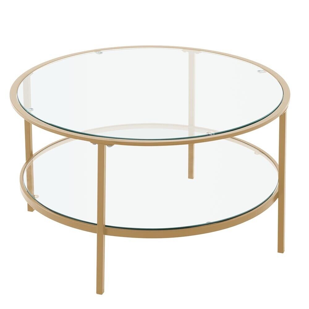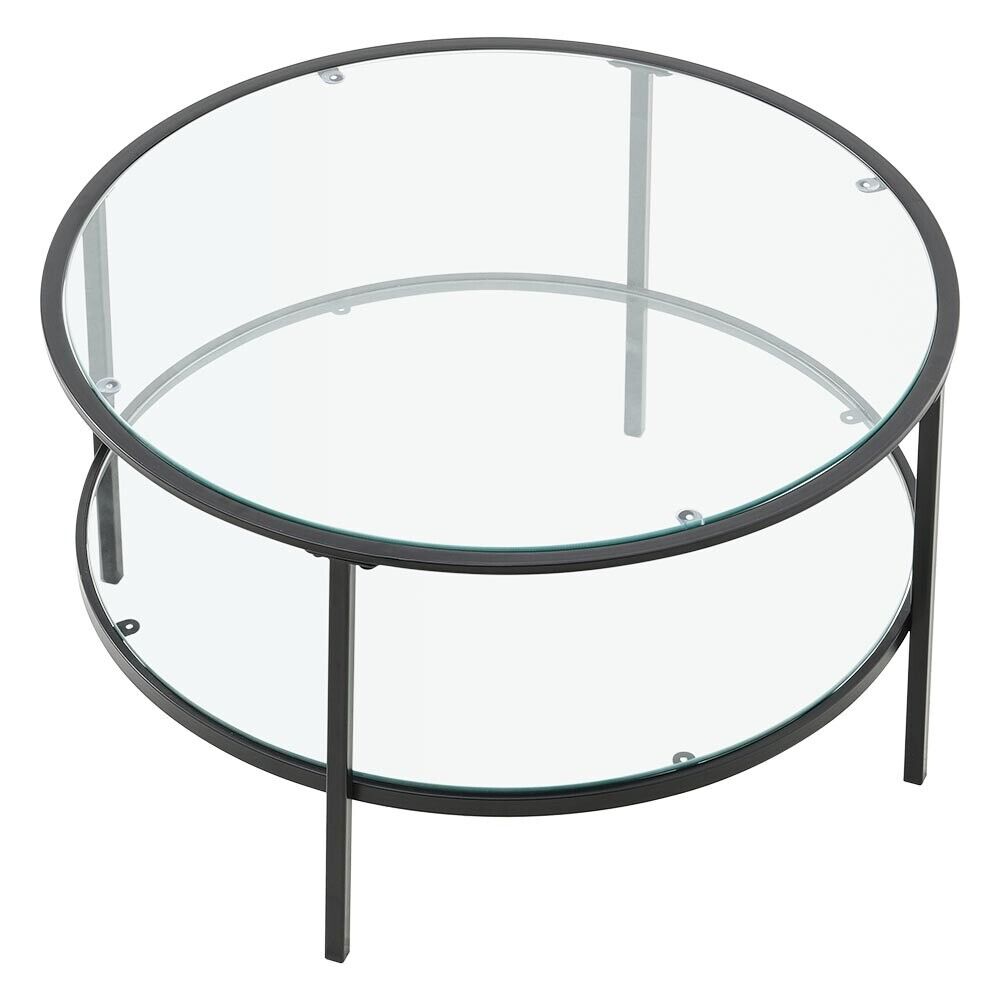 Large Round Coffee Table 2-Tier Storage Display Rack Clear Glass Top Metal Frame