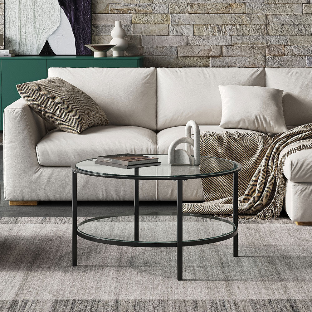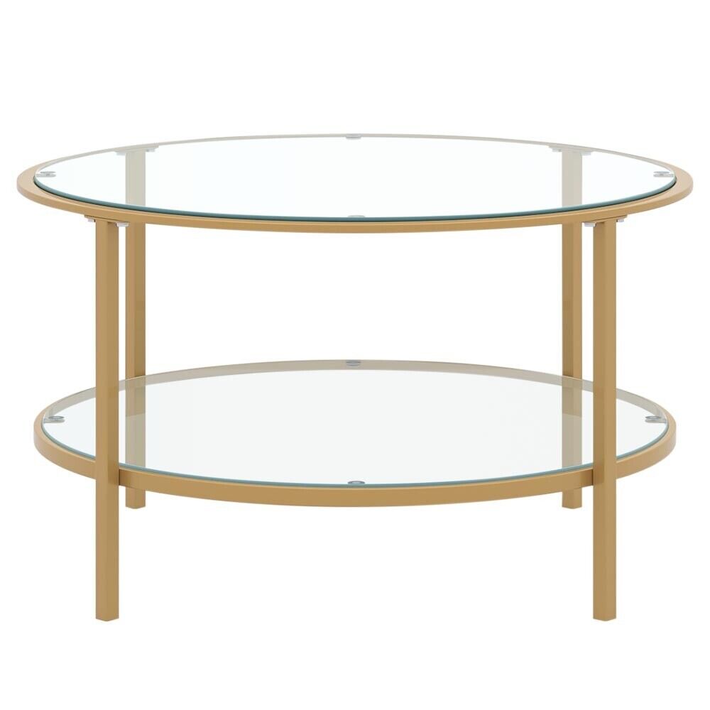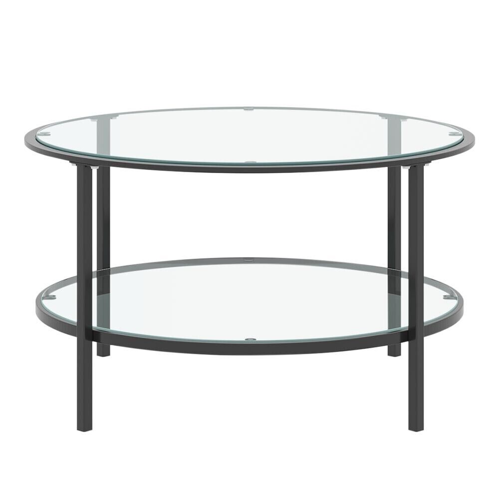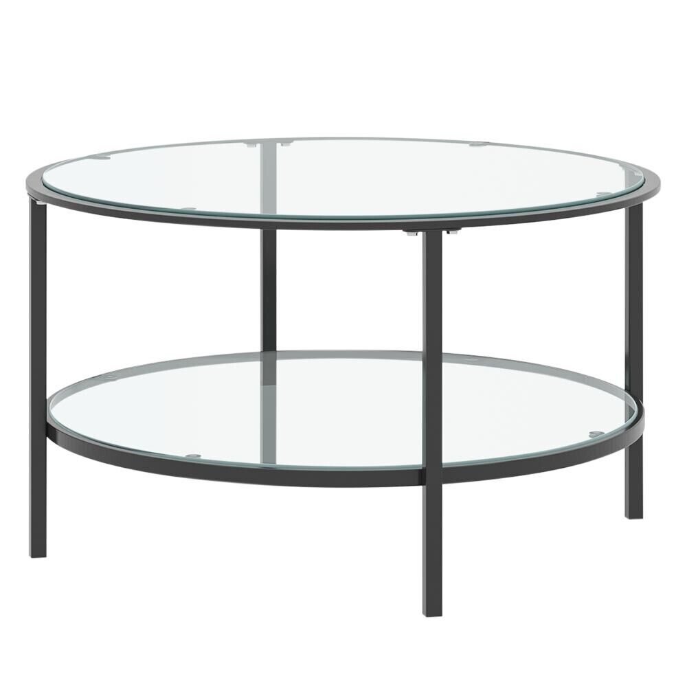 Large Round Coffee Table 2-Tier Storage Display Rack Clear Glass Top Metal Frame