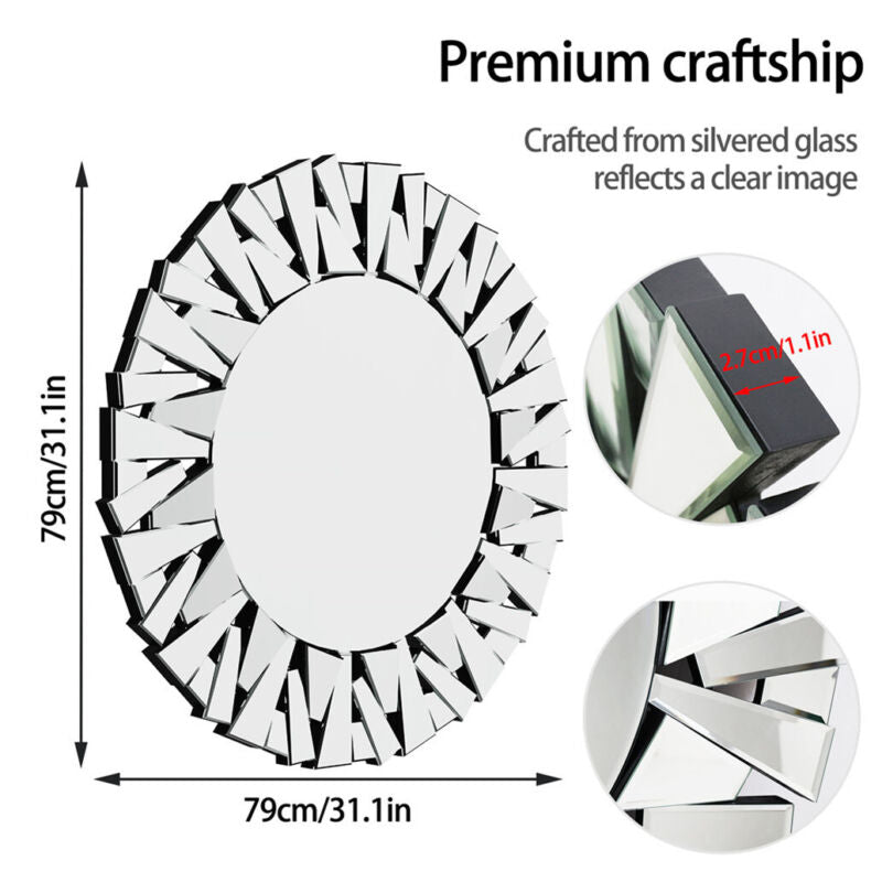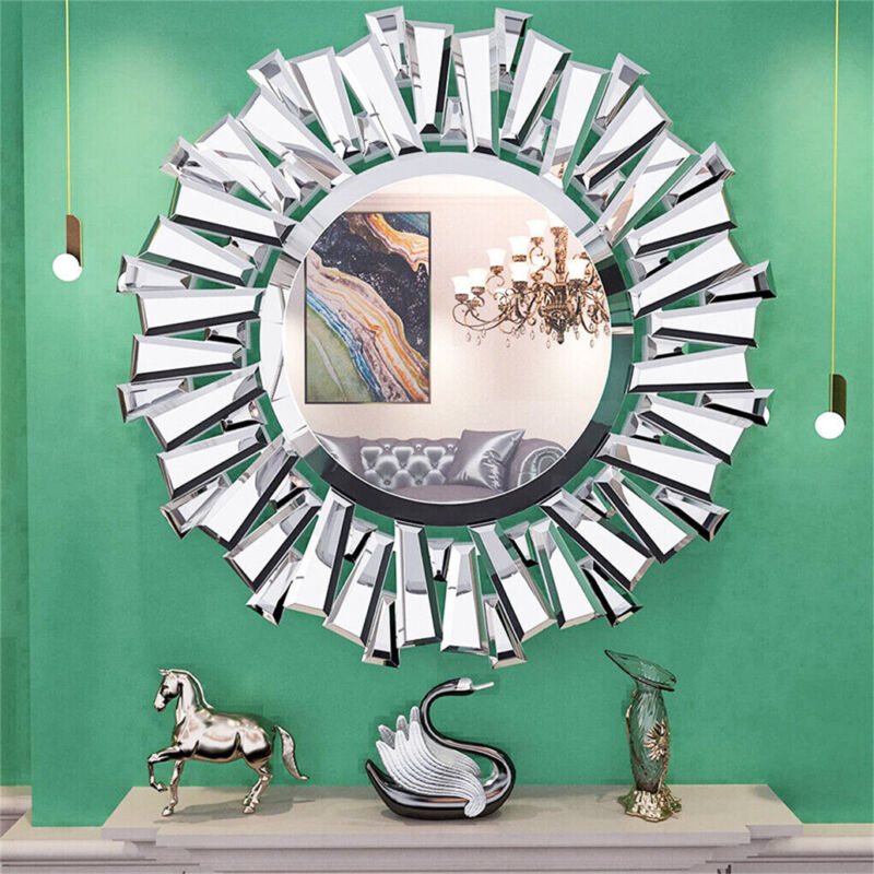 Large Round Decorative Sunburst Hanging Accent Mirror Geometric Art Boho Decor
