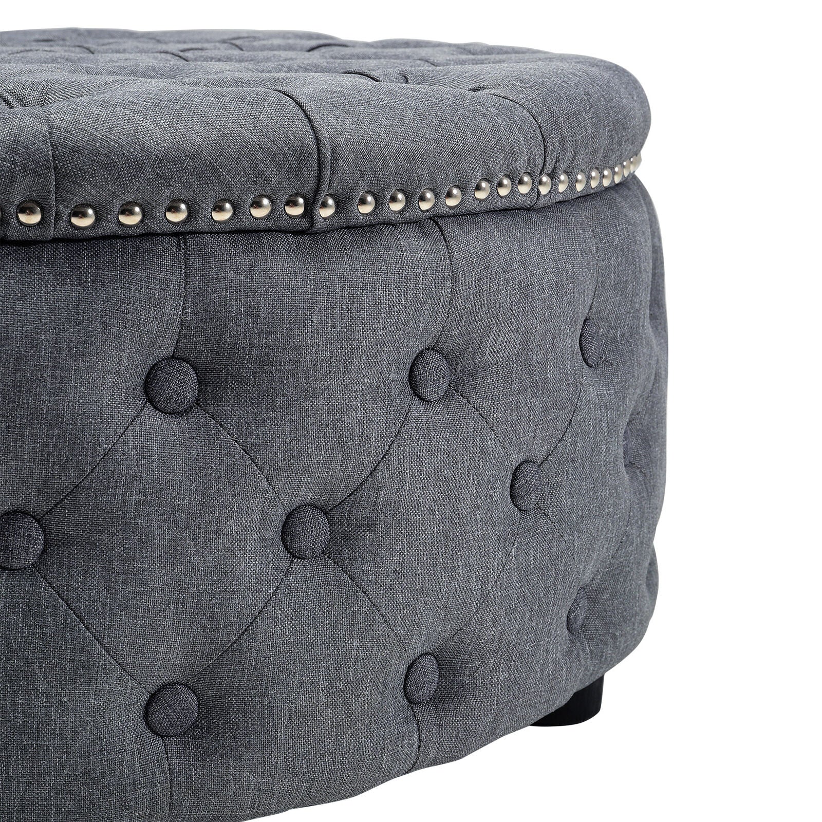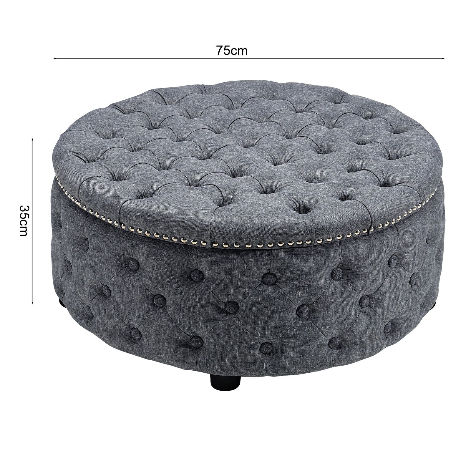 Large Round Fabric Linen Chesterfield Footstool Pouffe Ottoman Coffee Table UK