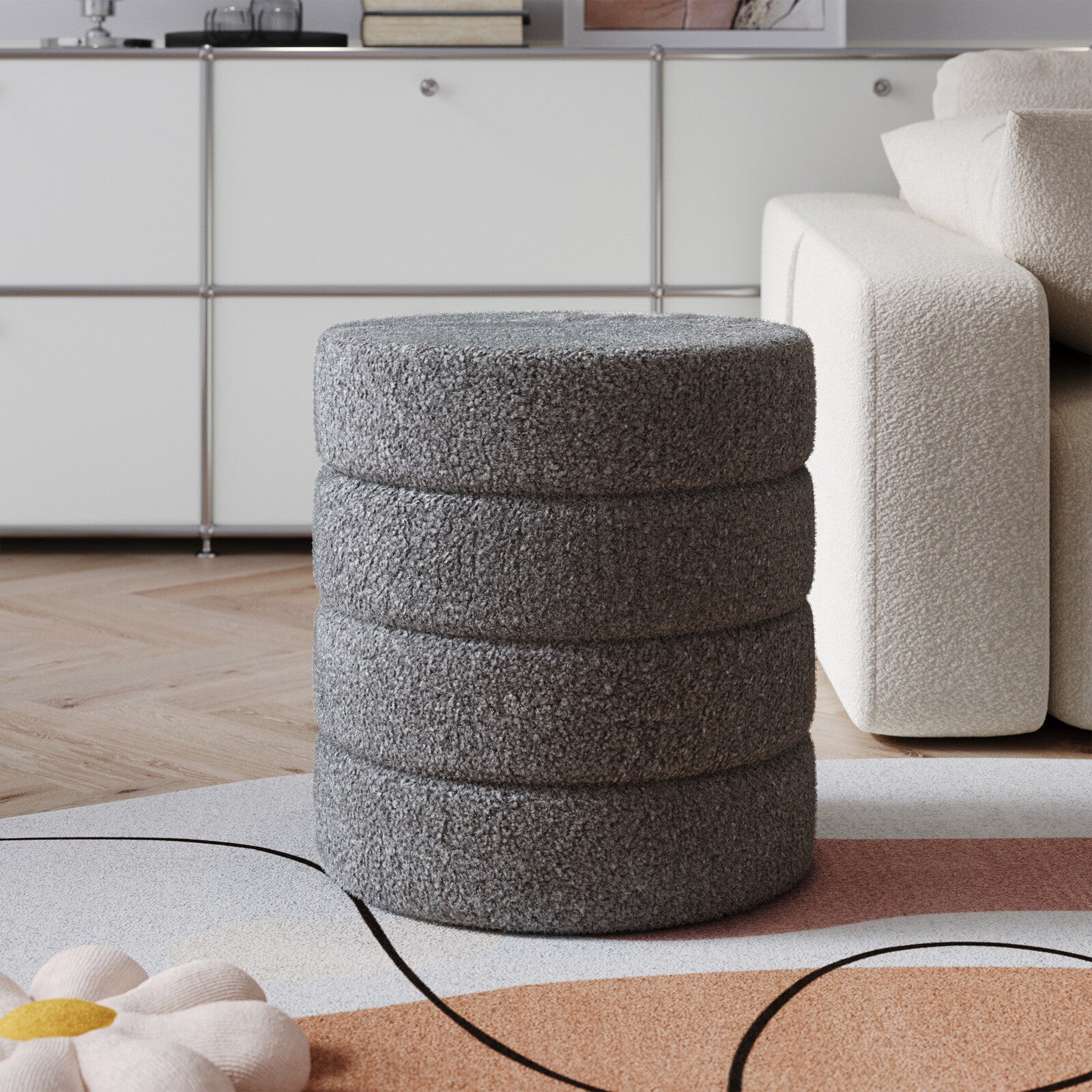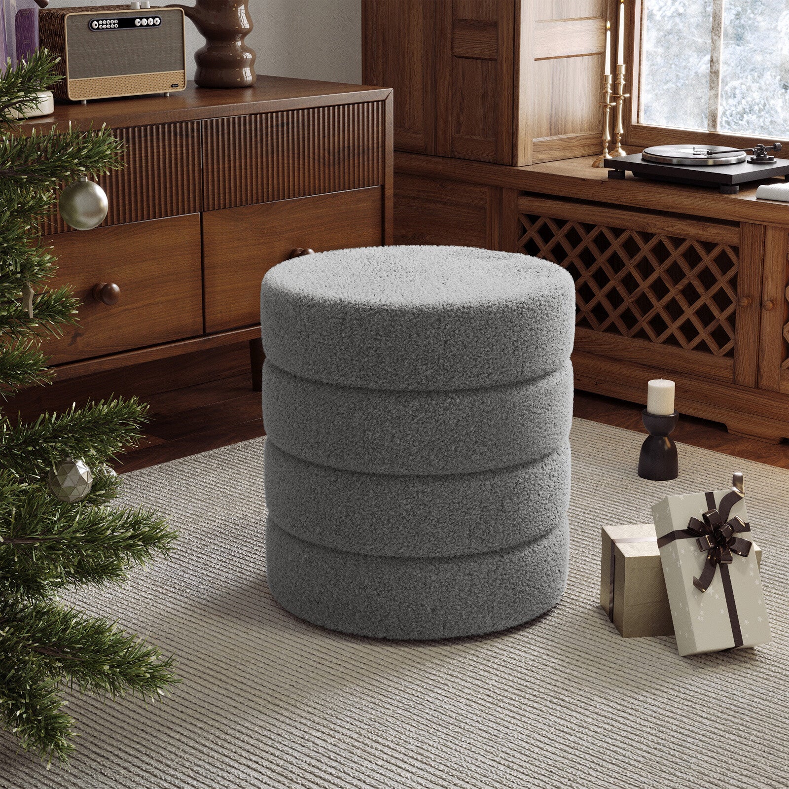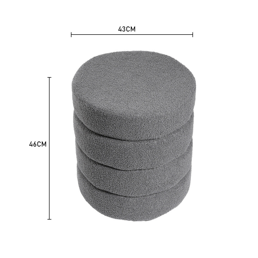 Large Round Footstool Vanity Dressing Table Stool Makeup Chair Grey Teddy Plush