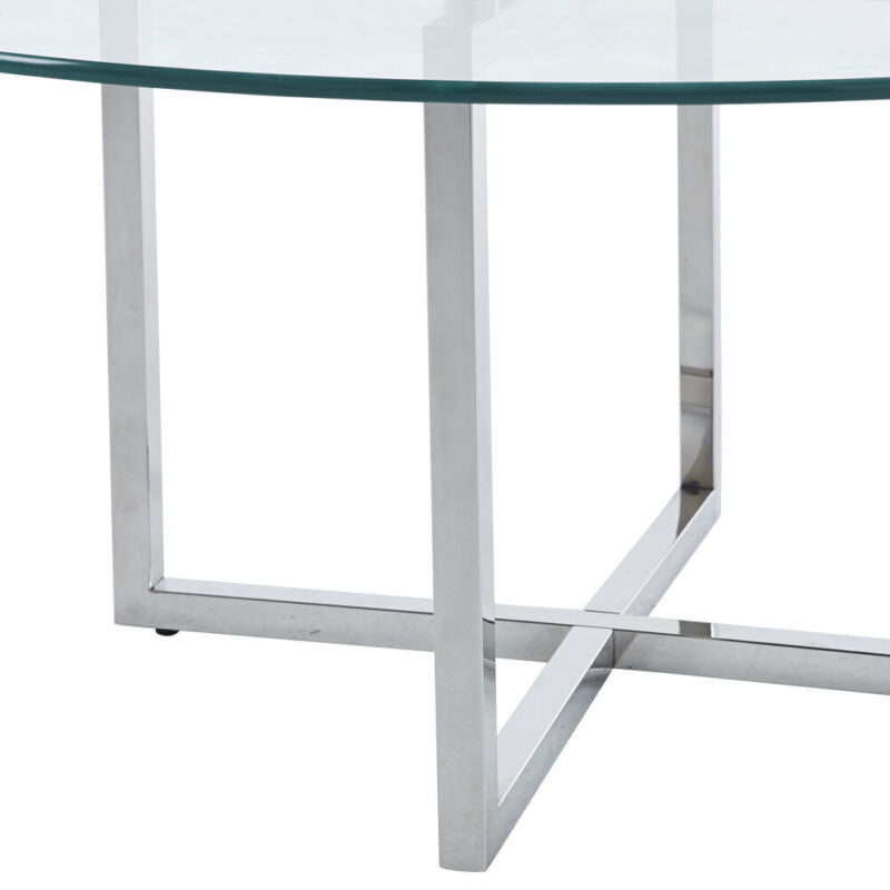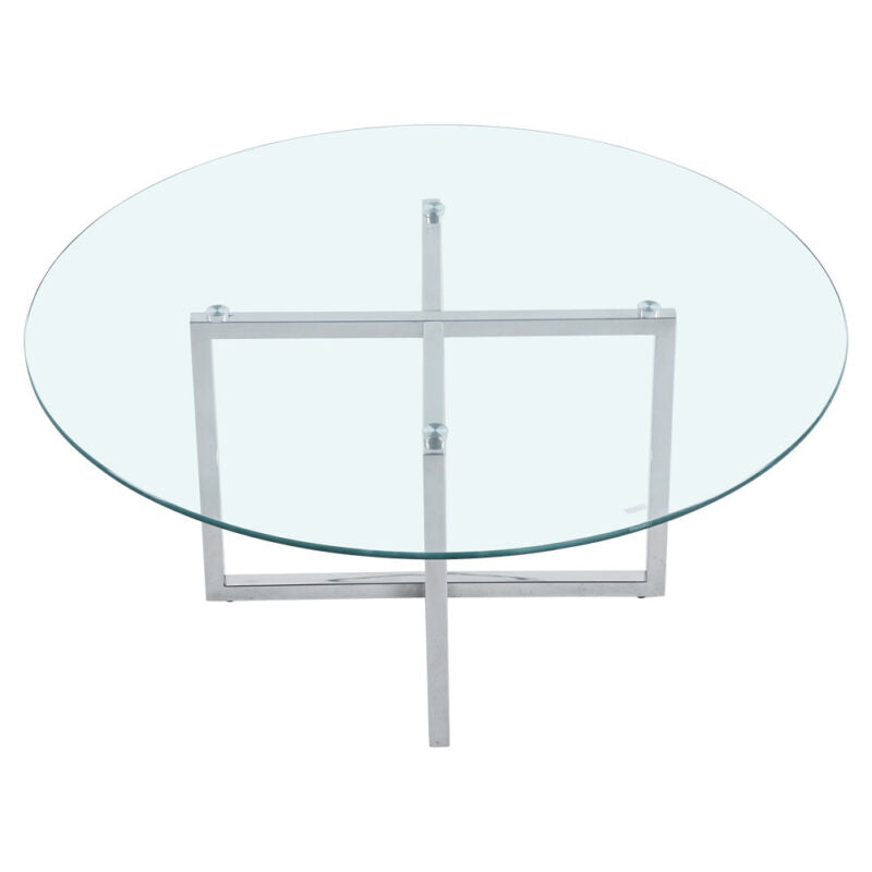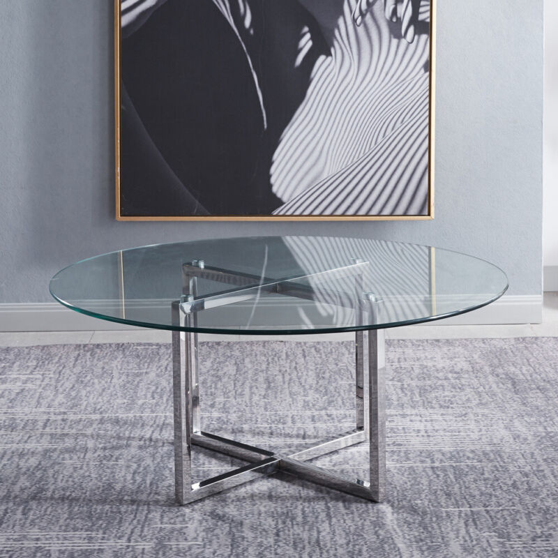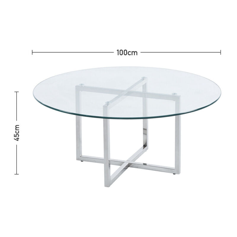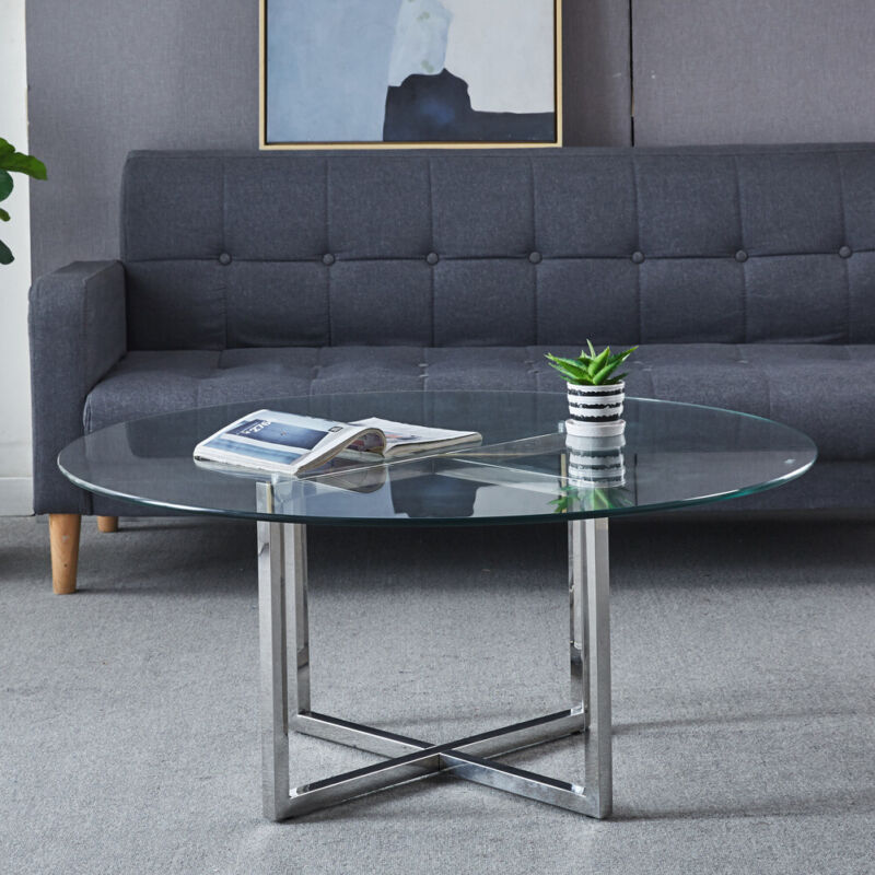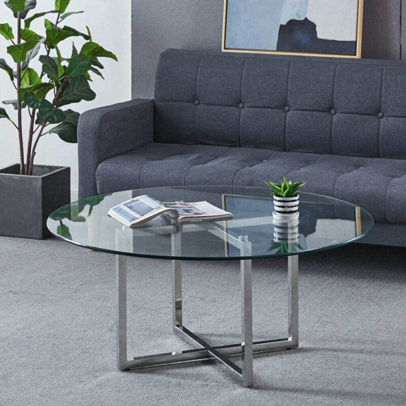 Large Round Glass Coffee Table Side Tea Table Glossy Metal X-Shaped Base Legs UK