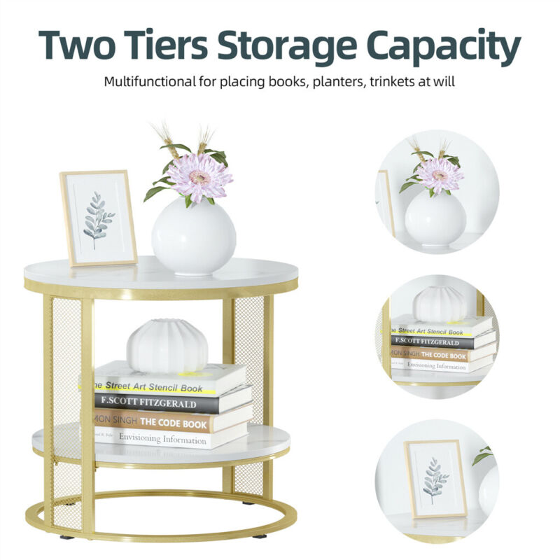 Large Round Marble Coffee Table Raised Sofa Side Table Magazine Reading Table