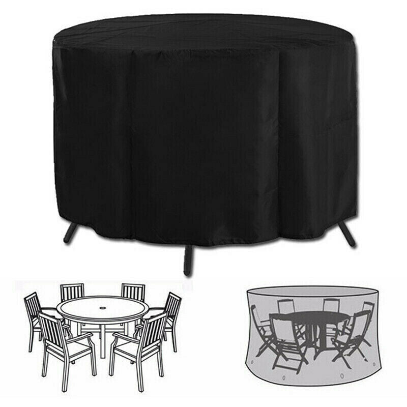 LARGE ROUND WATERPROOF GARDEN PATIO TABLE CHAIR SET FURNITURE RATTAN COVER UK