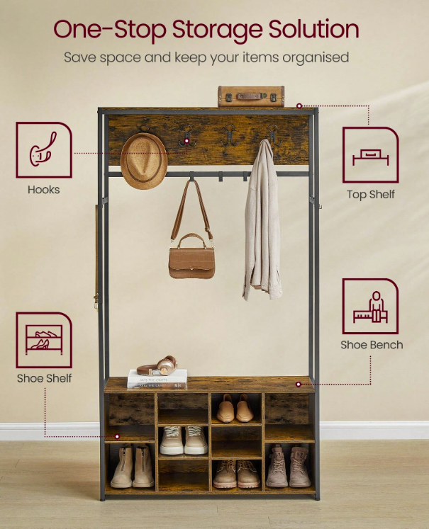 Features Antislip, Easy Installation, Hanging, Heavy Duty, Standalone, With Bench, With Rack, With Shelf, 14 Hooks