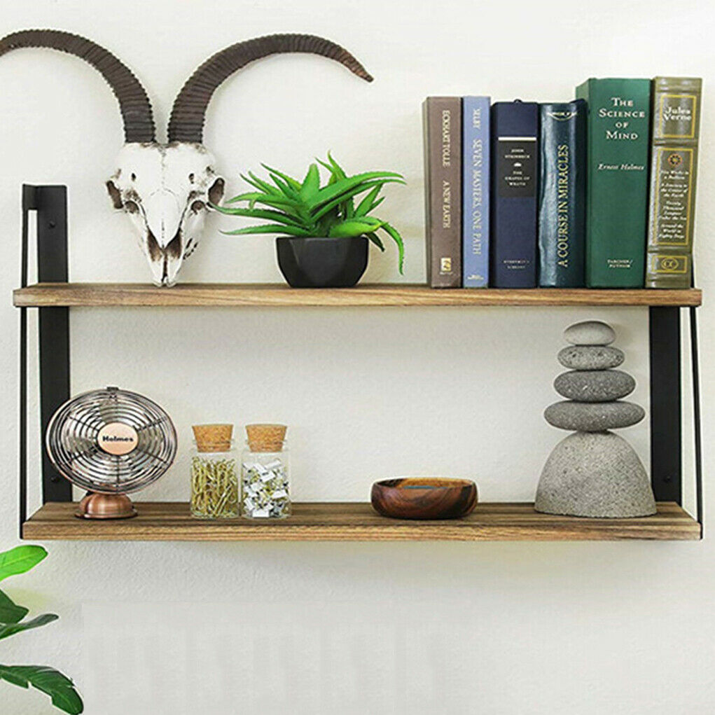 Large Rustic Wooden Floating Shelves Retro Stylish Wall Shelf Corner StorageUnit