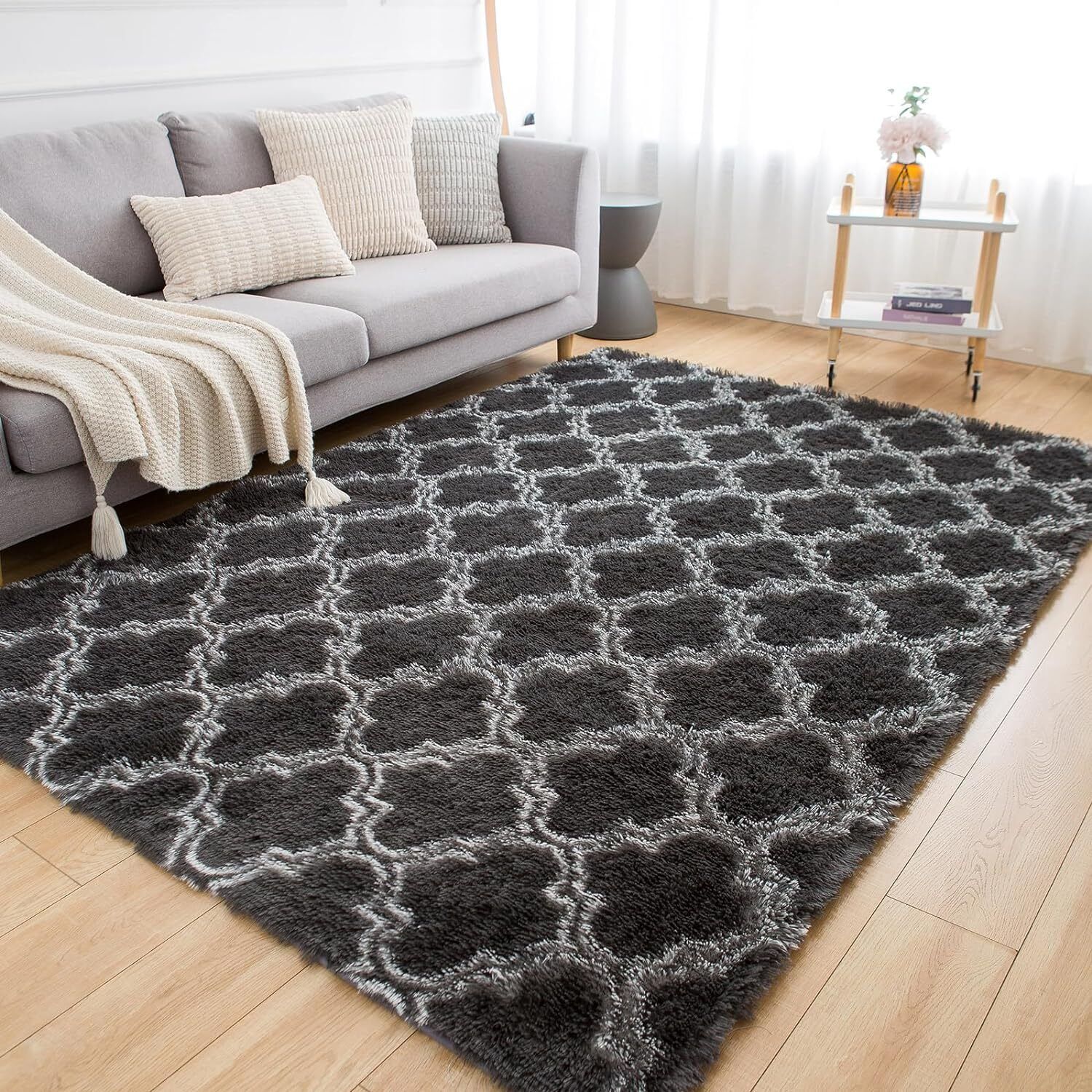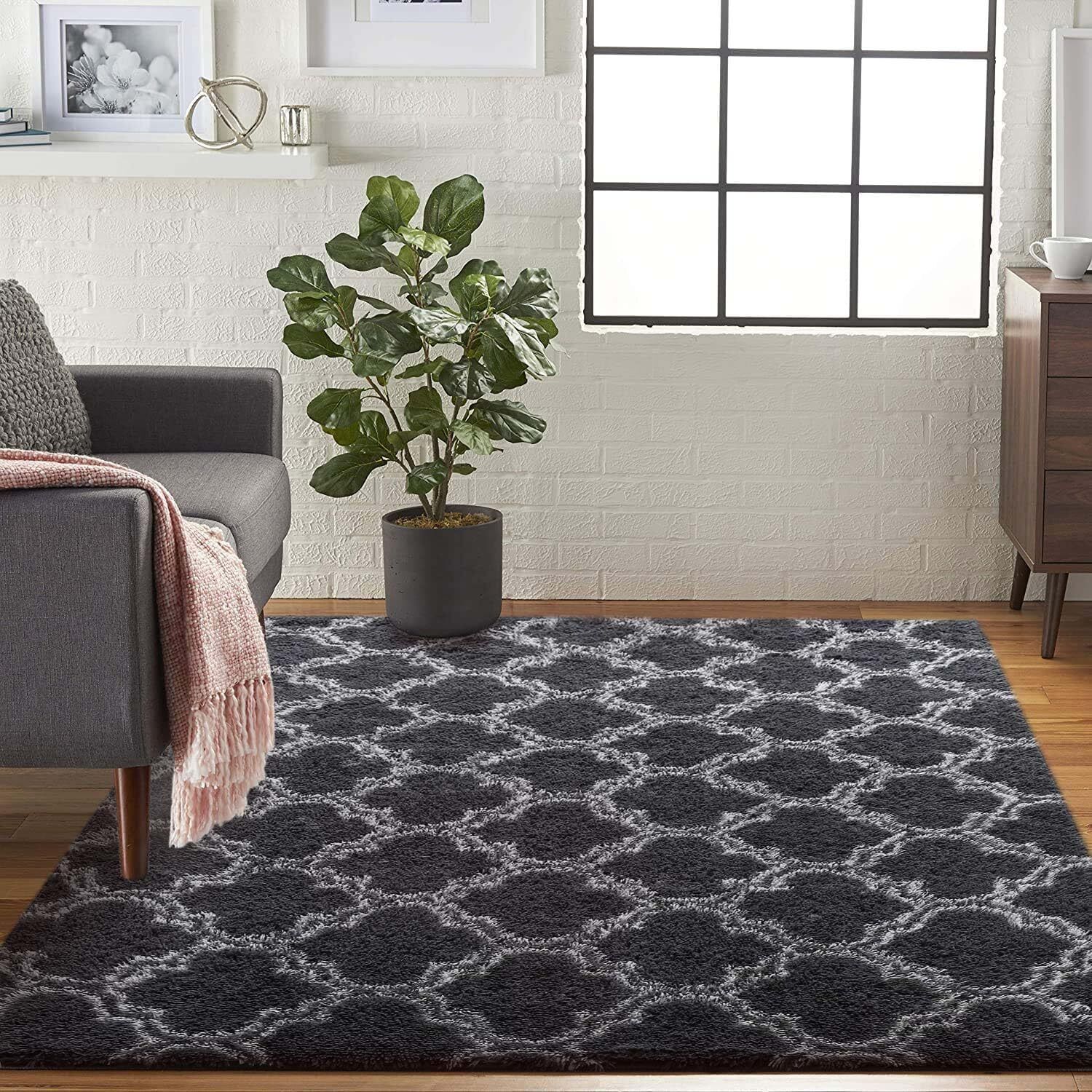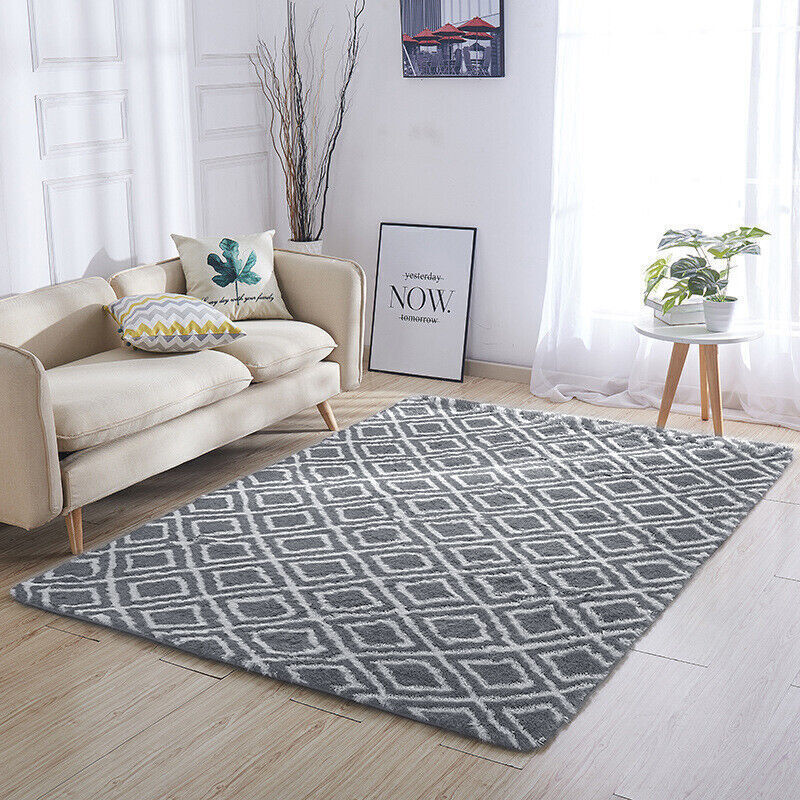 Large Shaggy Fluffy Rugs Anti-Slip Super Soft Mat Living Room Bedroom Carpet Rug