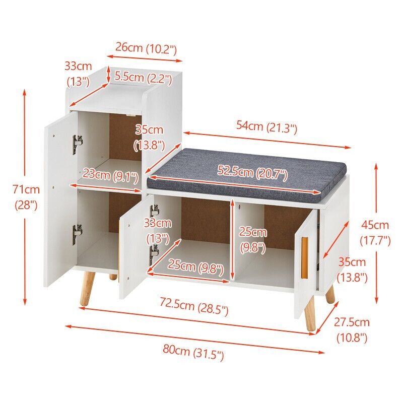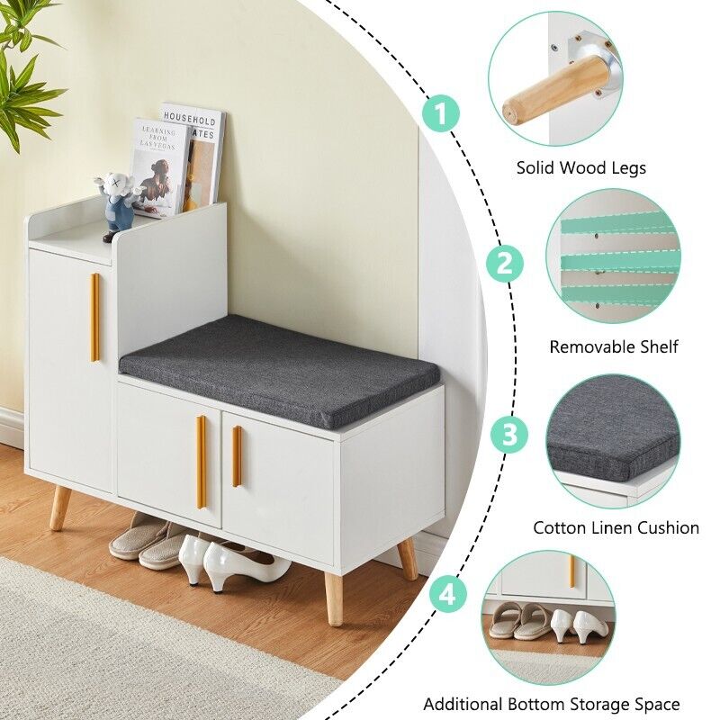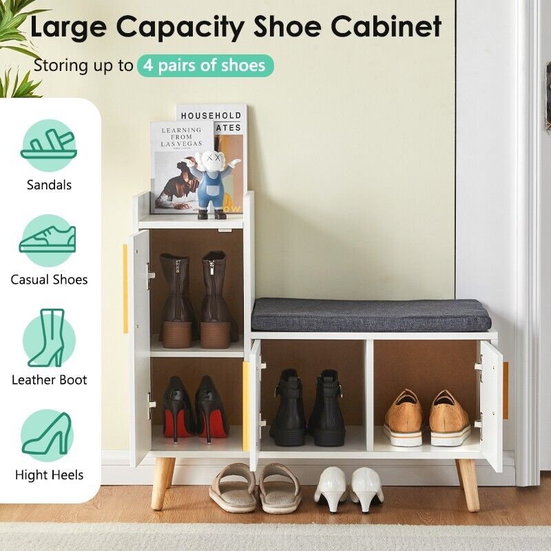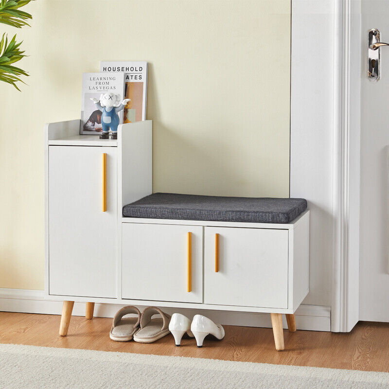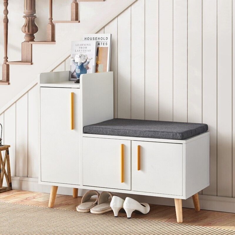 Large Shoe Bench Shoe Storage Rack Cabinets with Padded Seat Cushion for Hallway