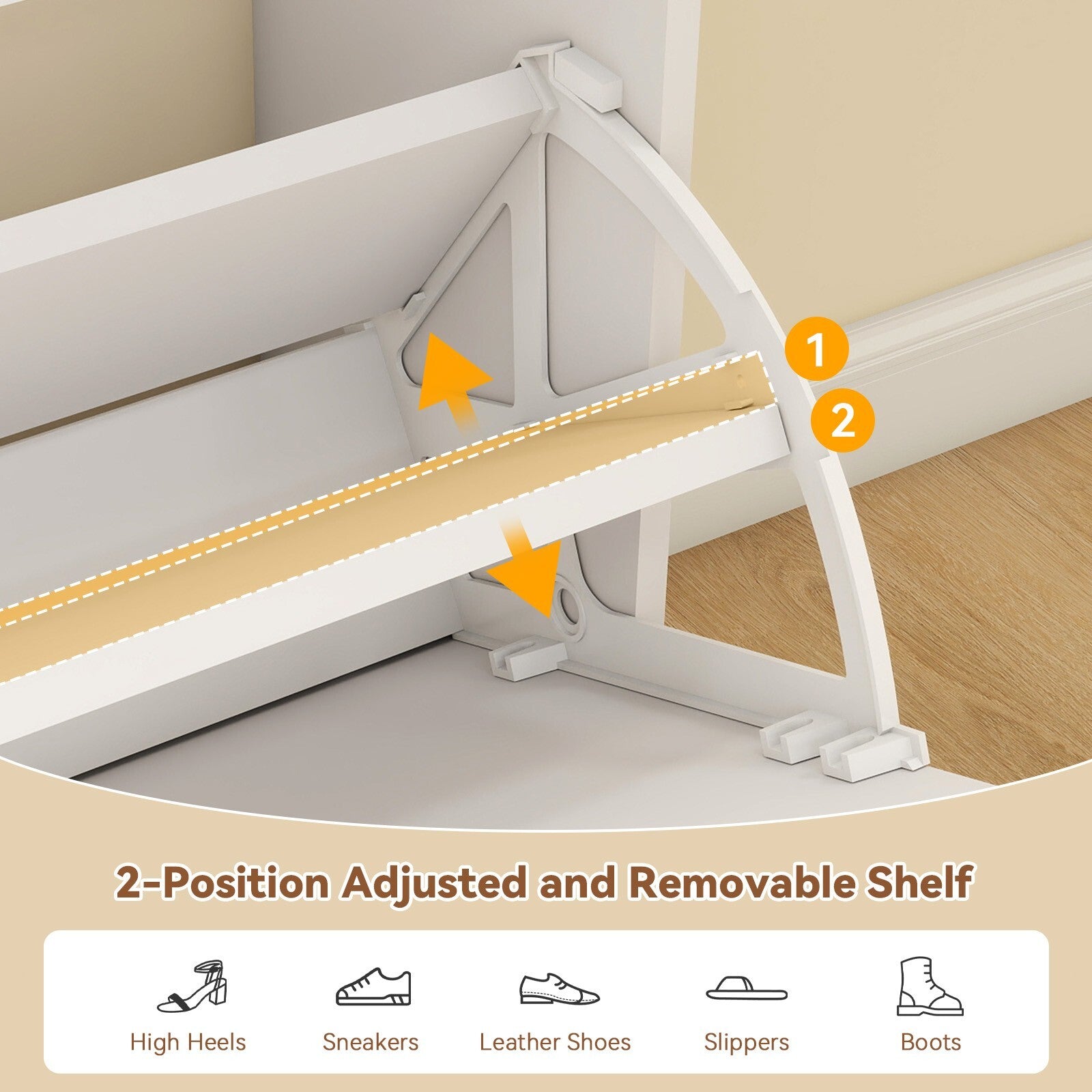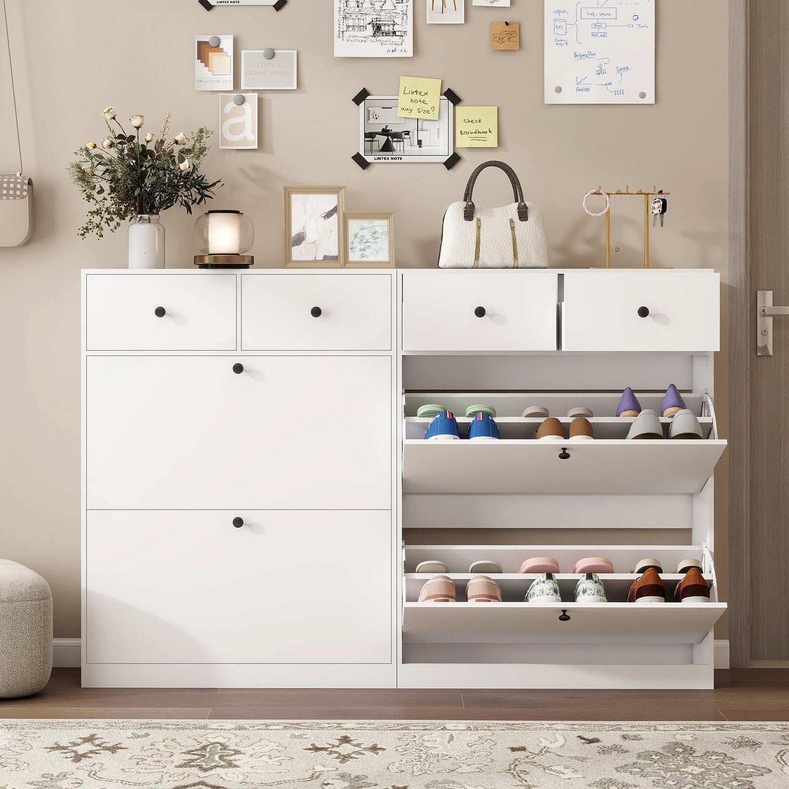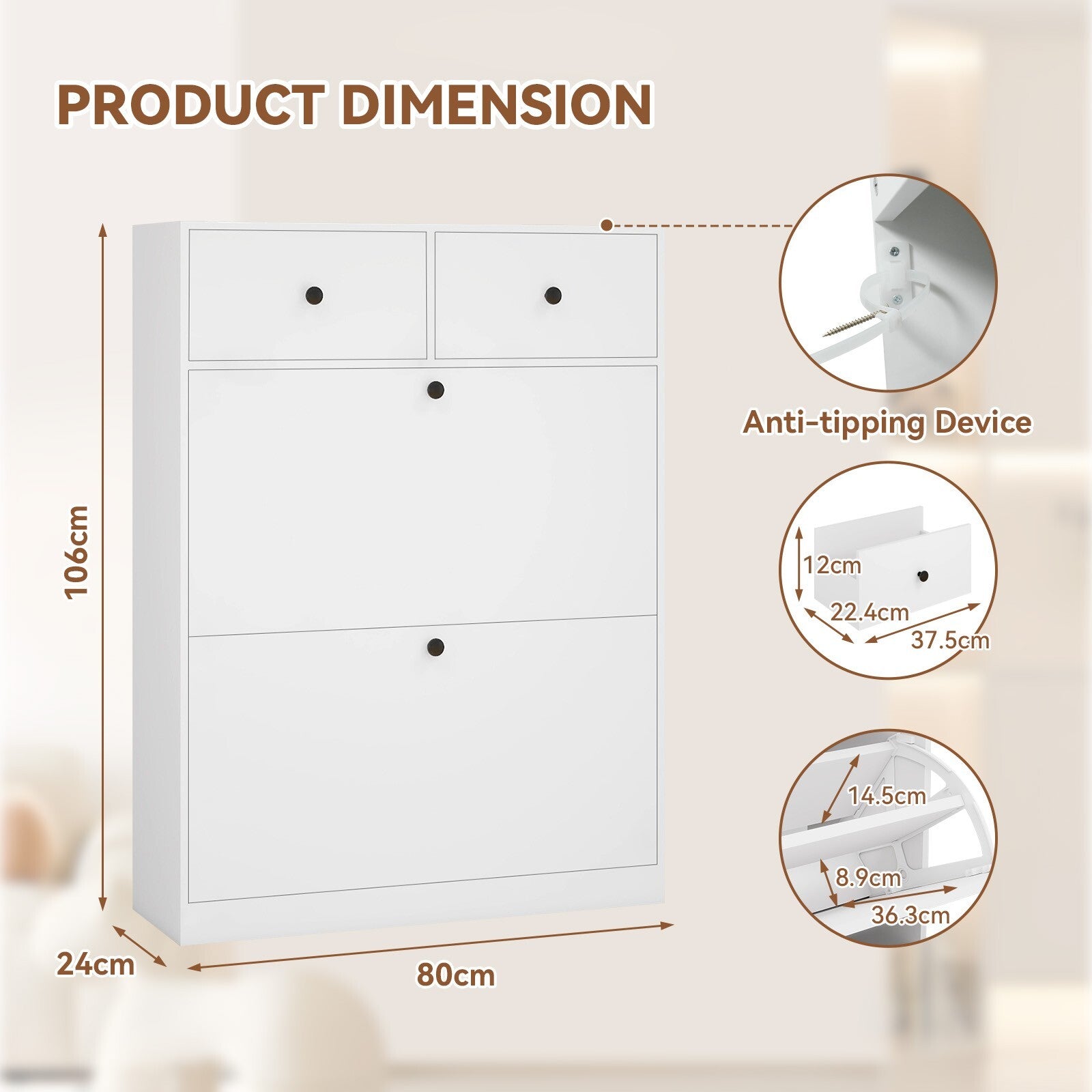 Large Shoe Cabinet Shoe Rack Storage Cupboard Unit 2 Drawer Wooden Modern White