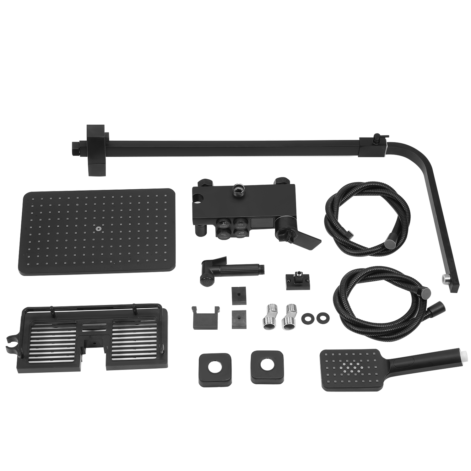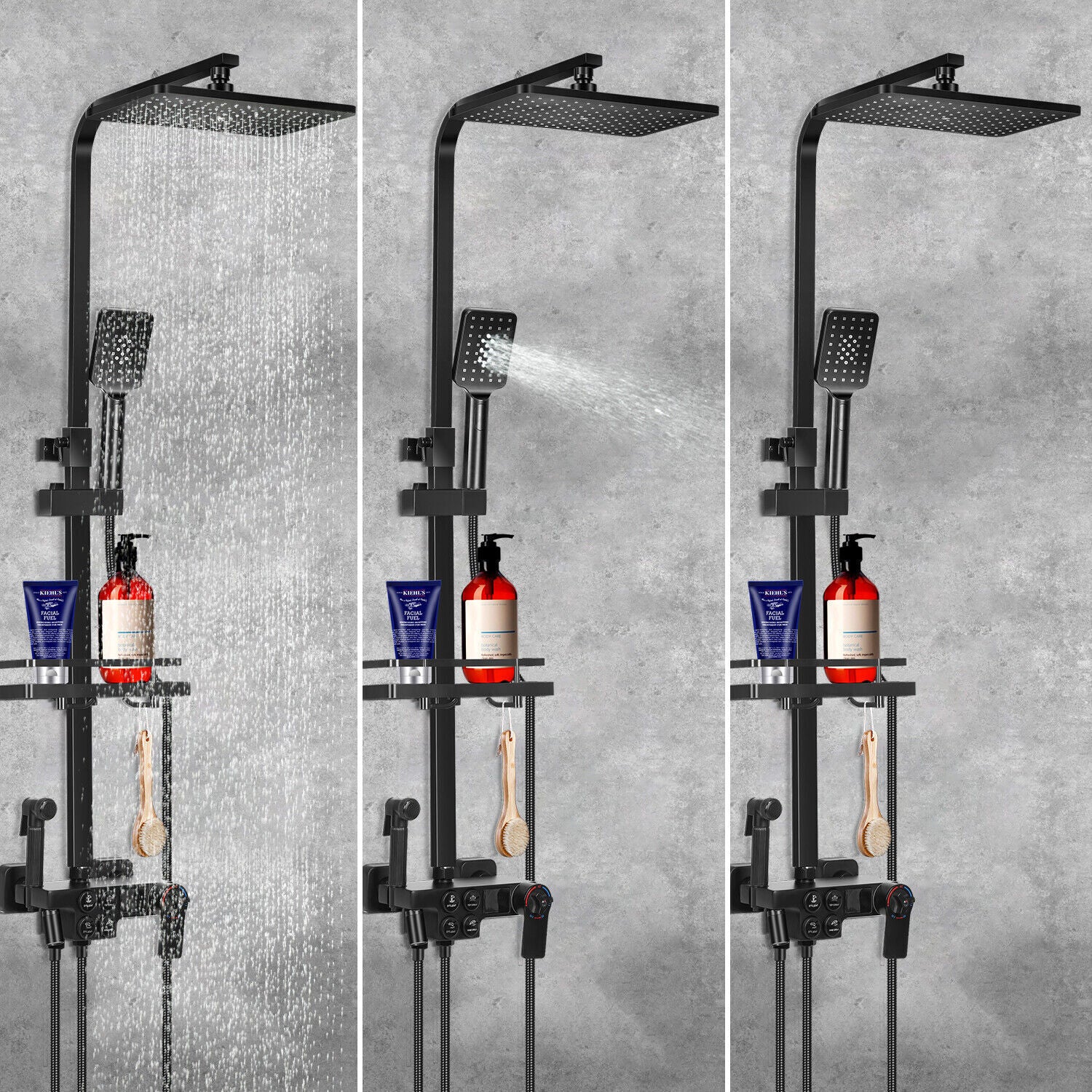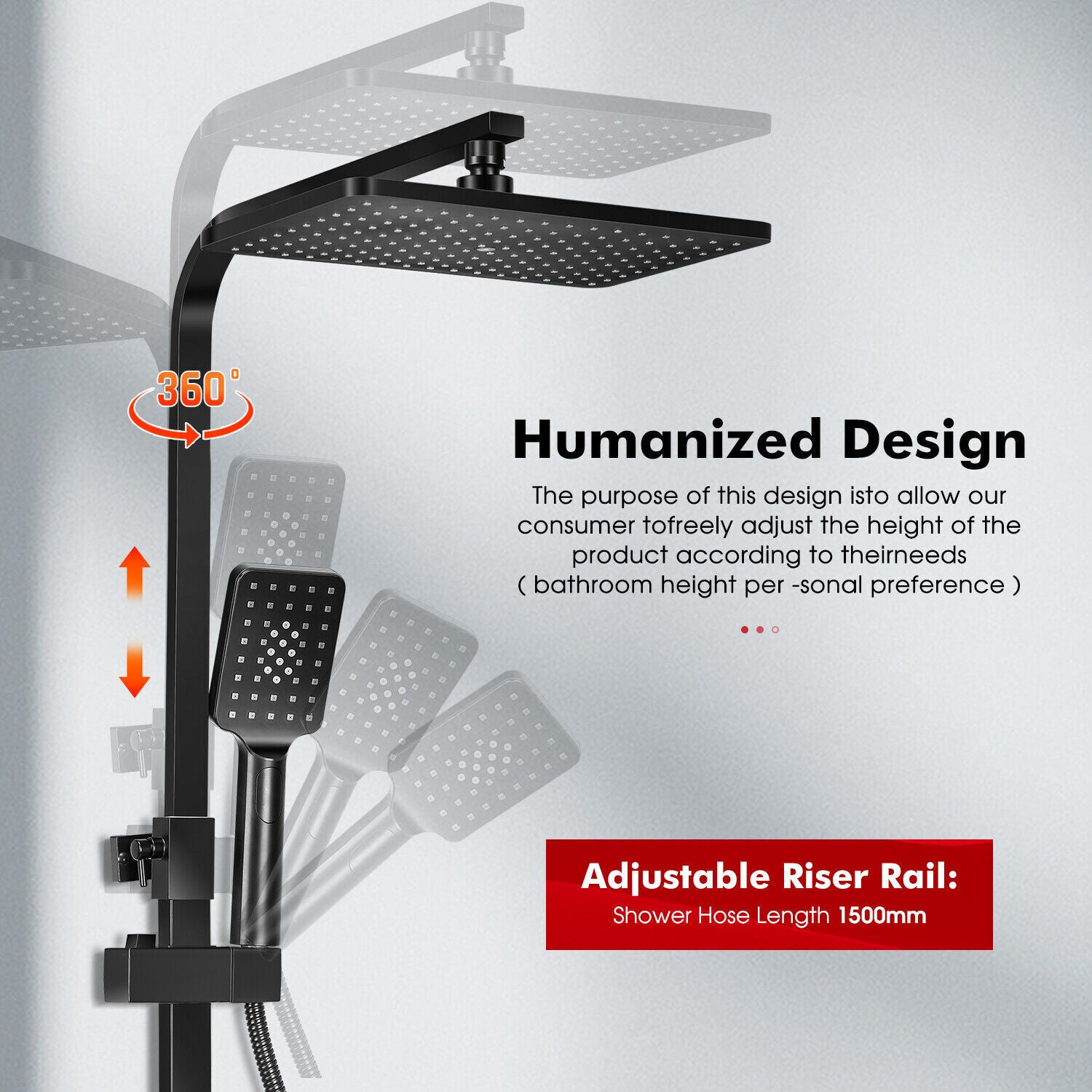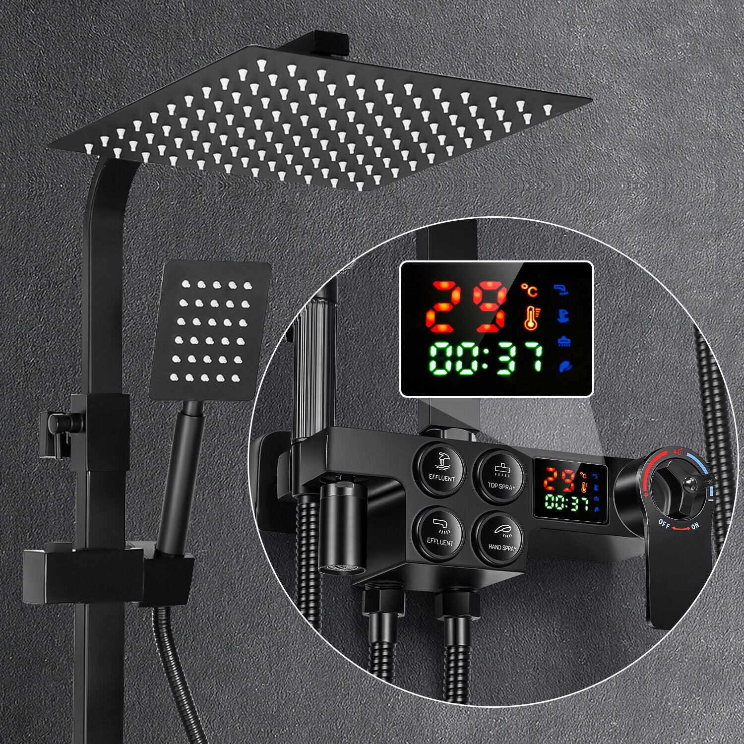 Large Shower Kit Twin Head Thermostatic Adjust Riser Rail Chrome Square Set