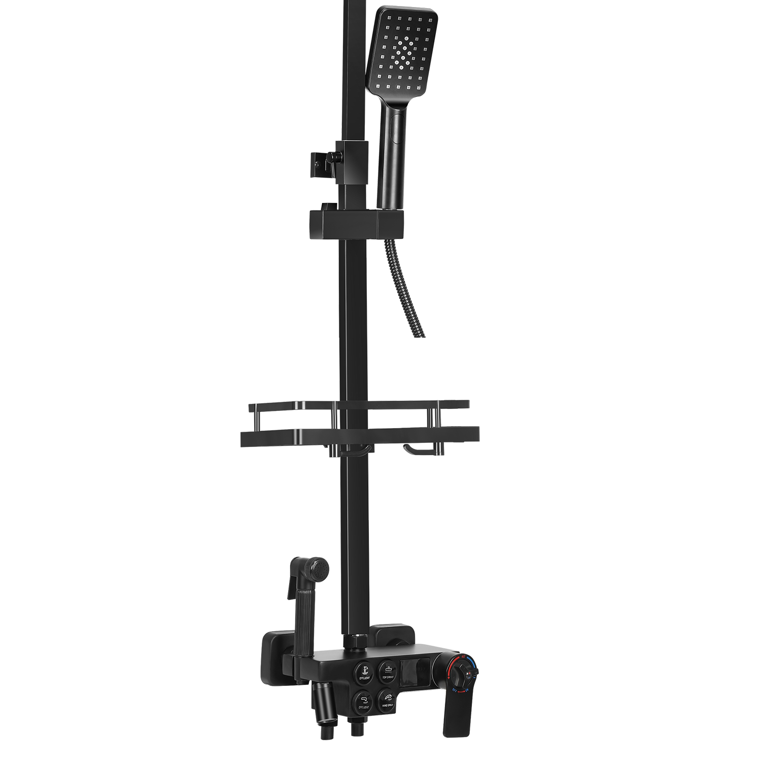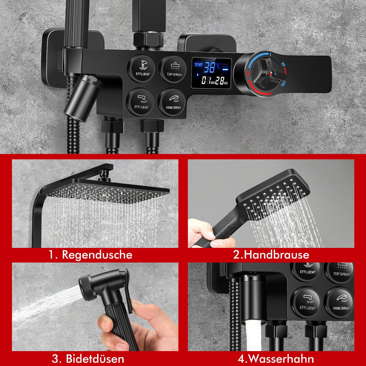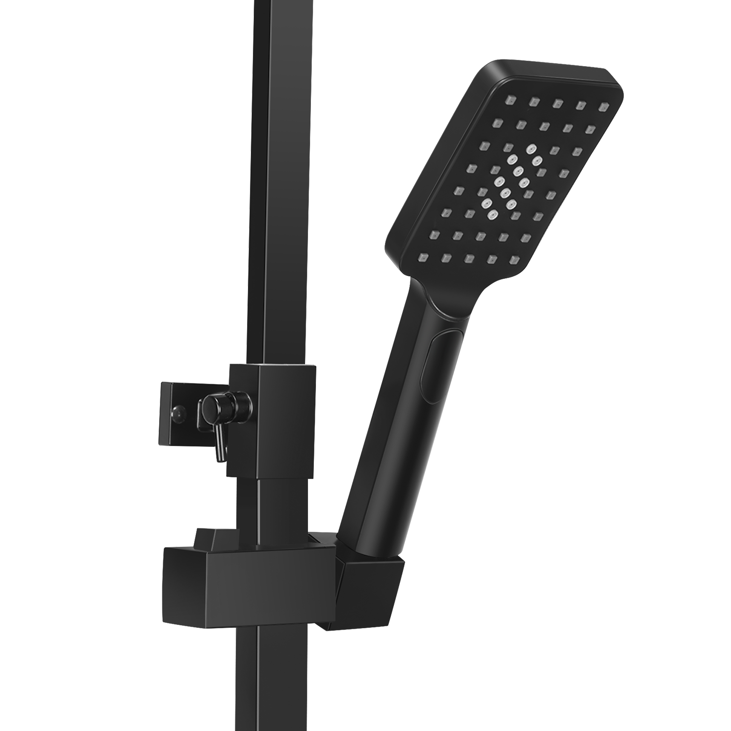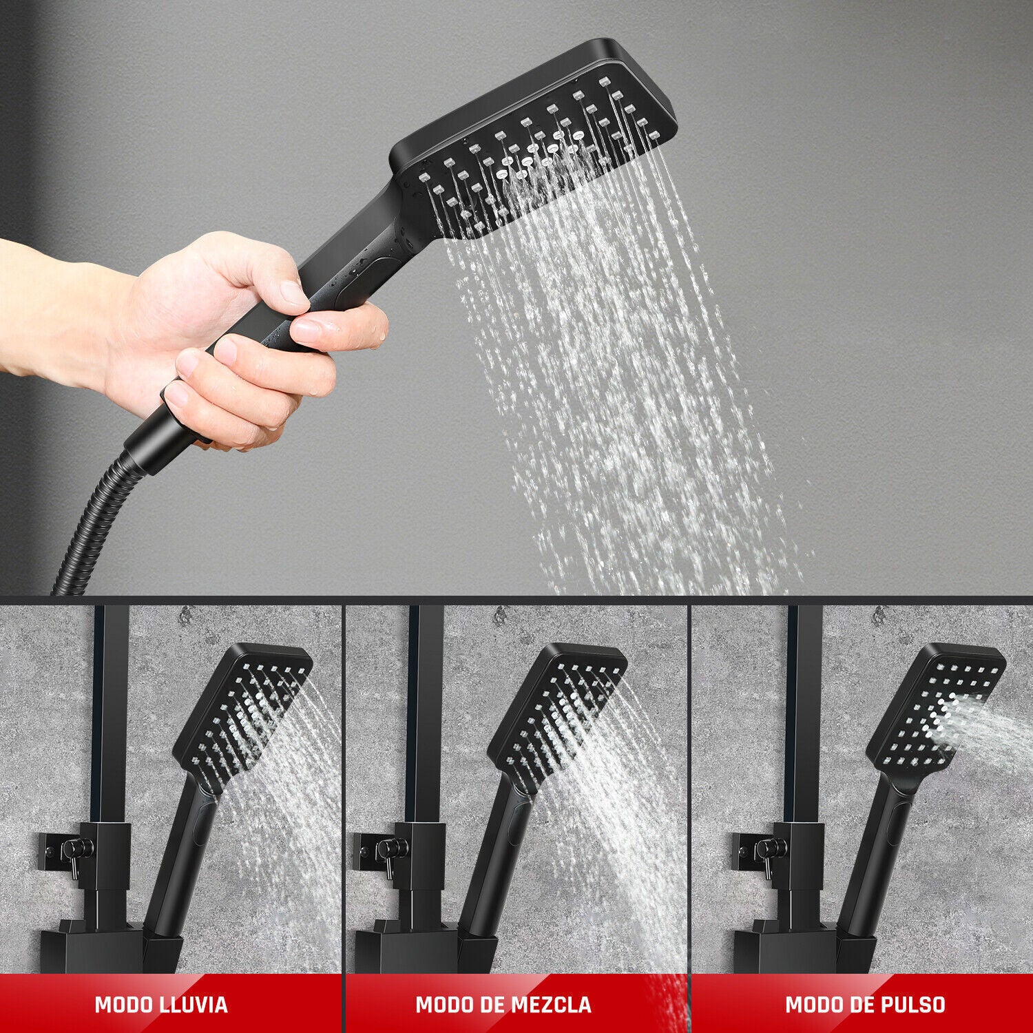 Large Shower Kit Twin Head Thermostatic Adjust Riser Rail Chrome Square Set