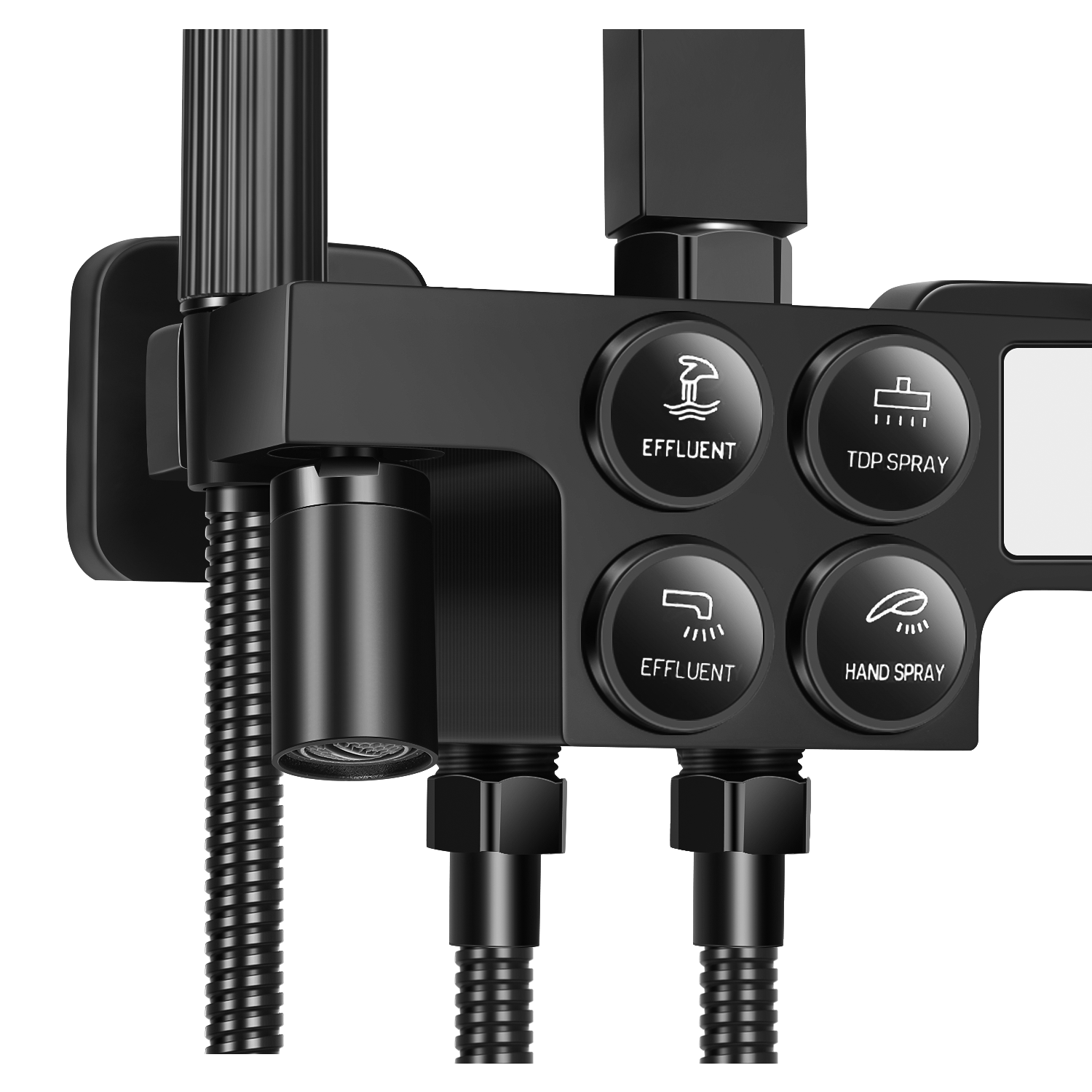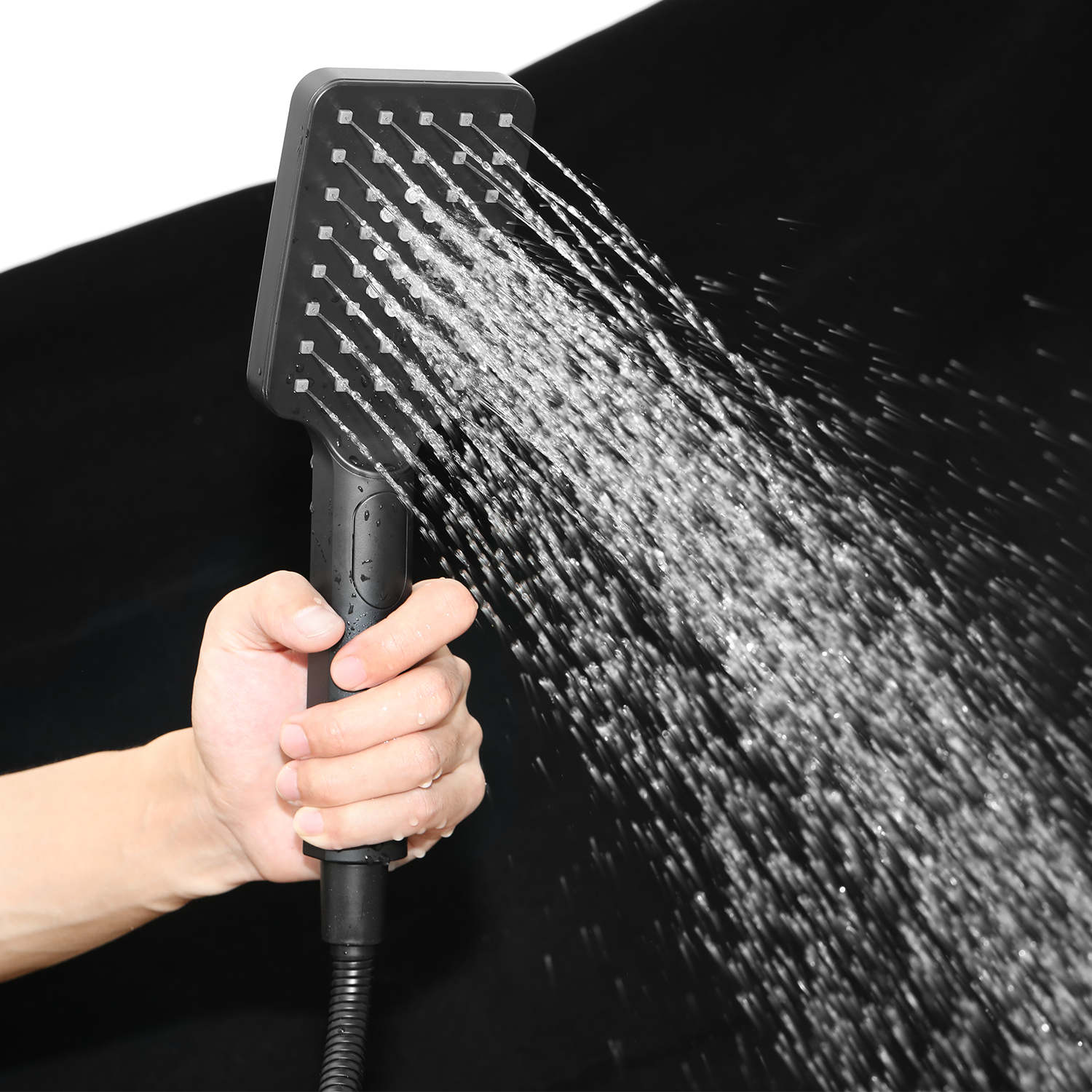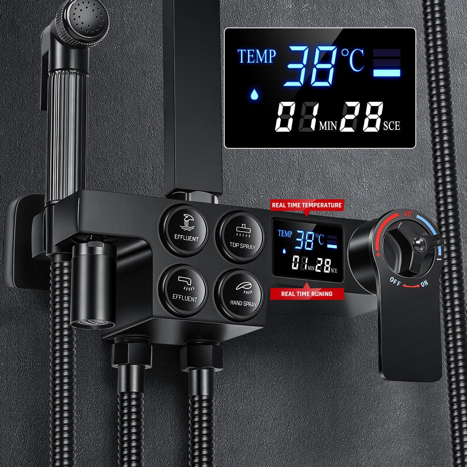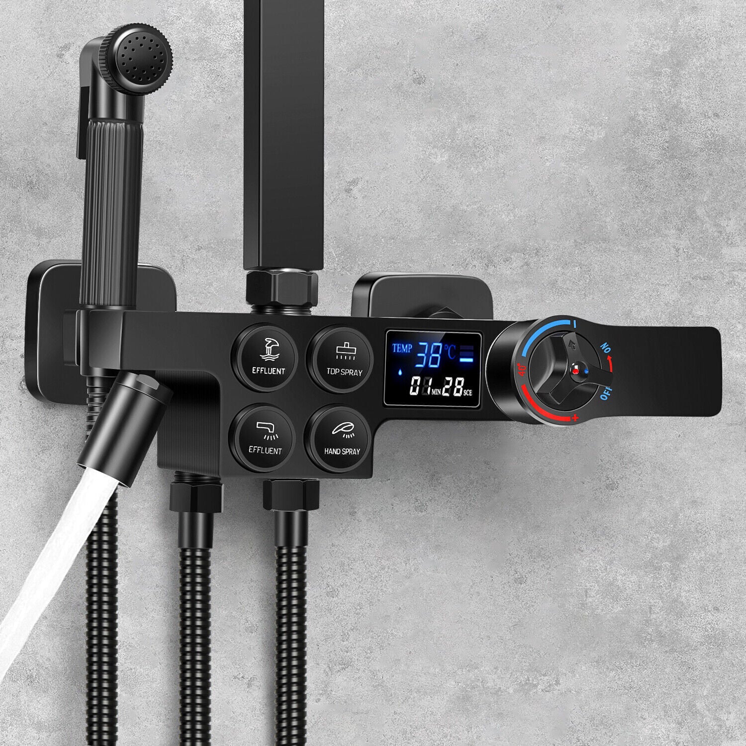 Large Shower Kit Twin Head Thermostatic Adjust Riser Rail Chrome Square Set