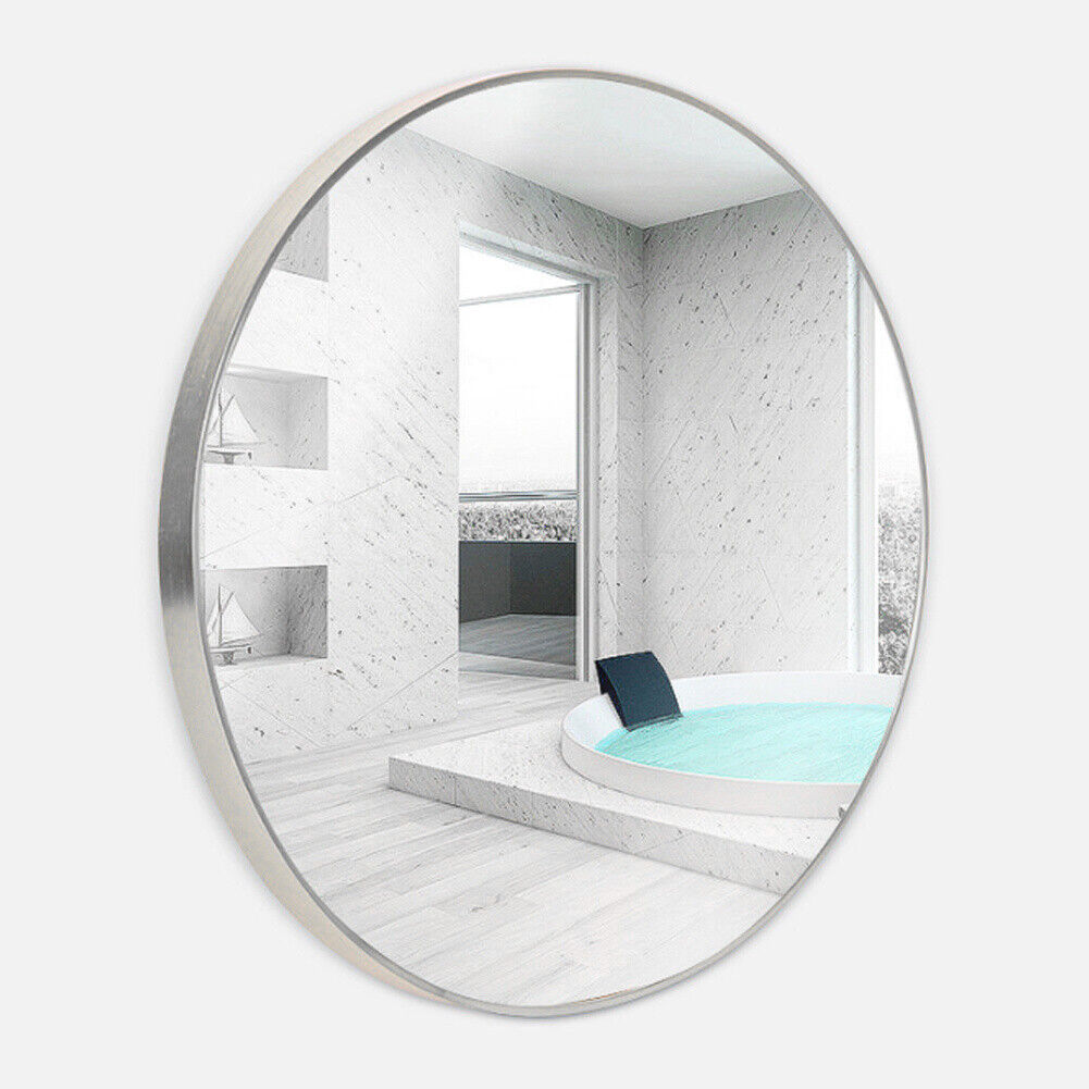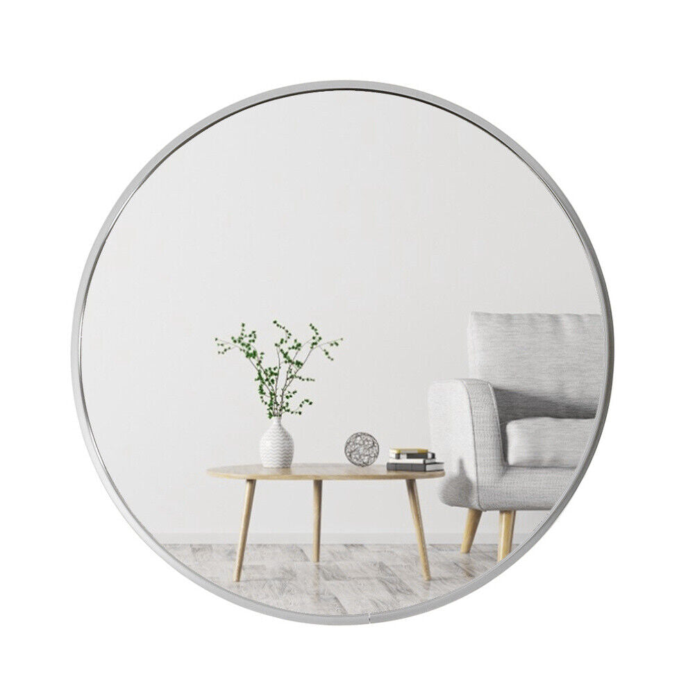 Large Silver Framed Round Geometric Wall Mirror Modern Circle Glass Decor 40cm