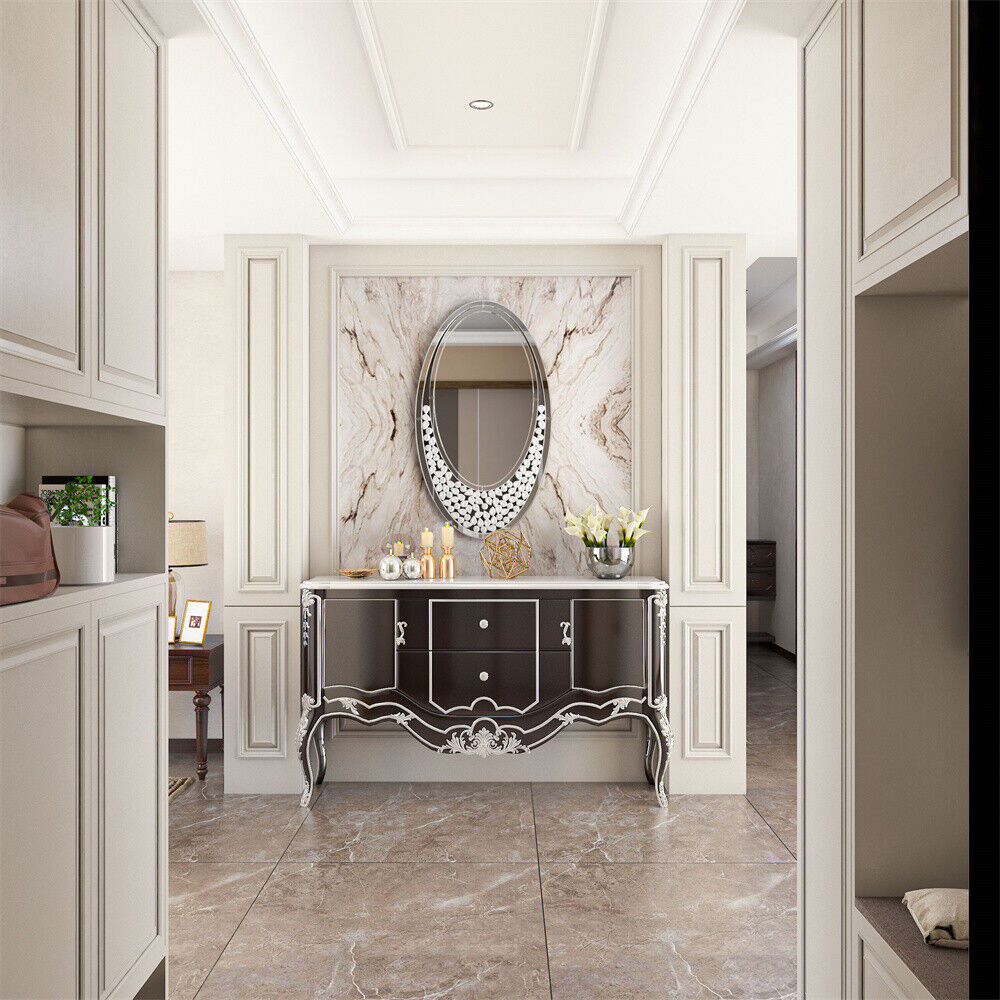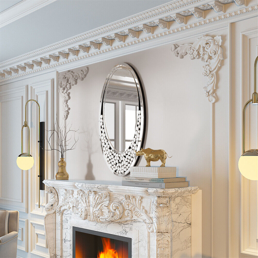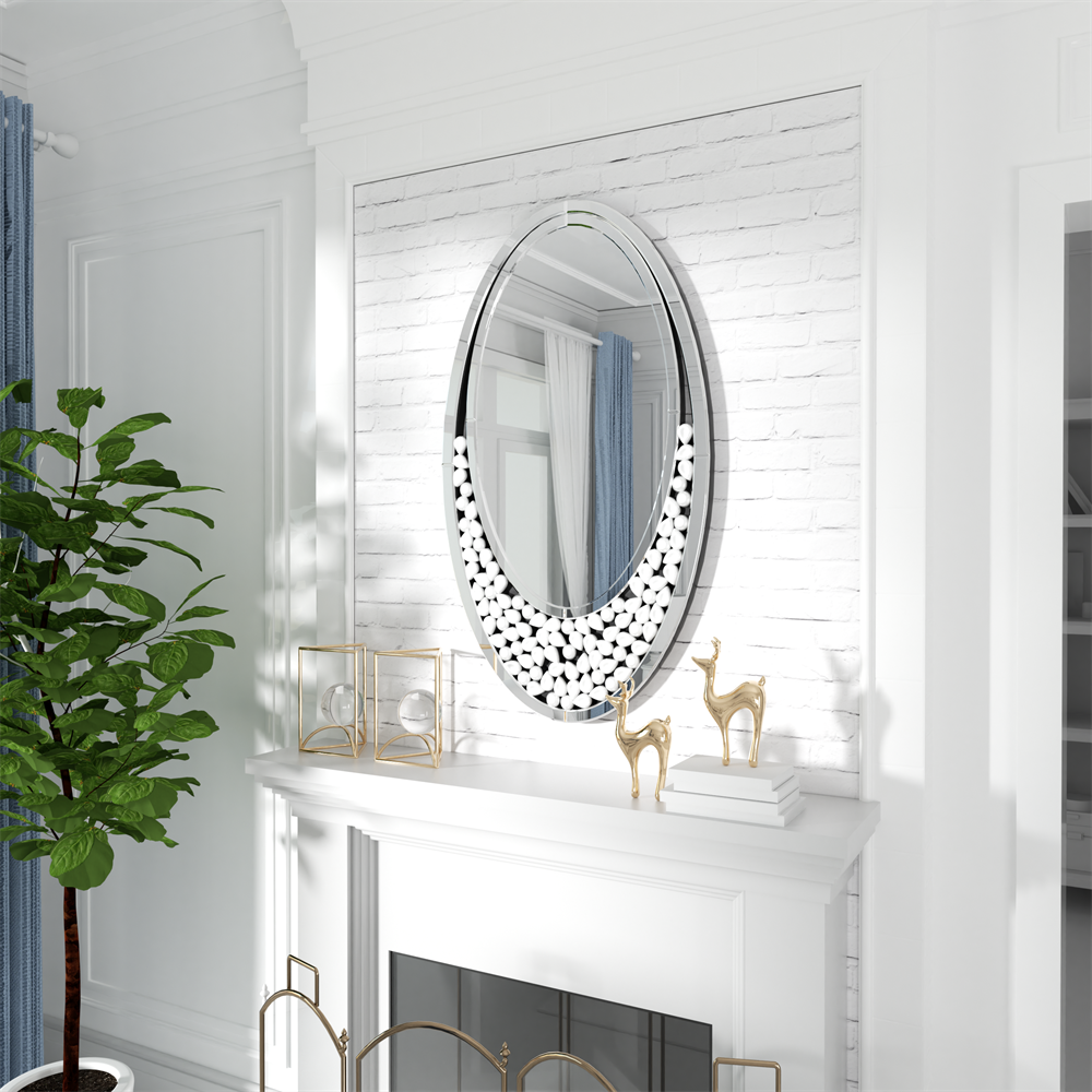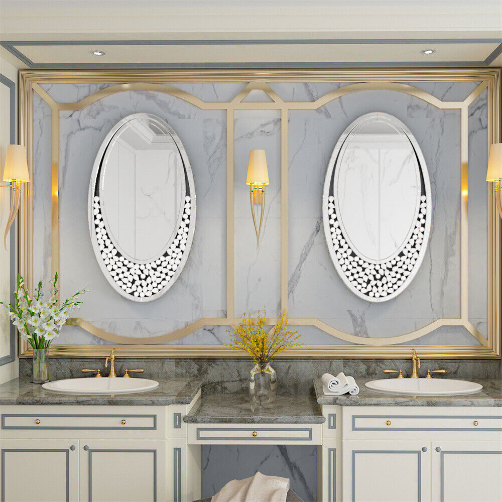 Large Silver Wall Mirror Art Shiny Teardrop Fill Decorative Accent Vanity Mirror
