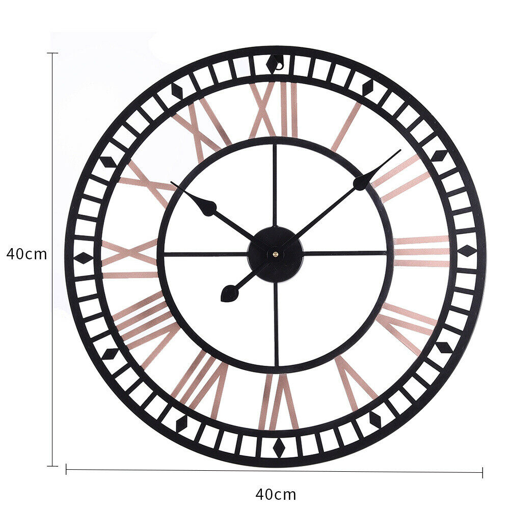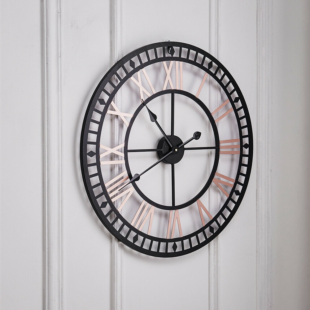 LARGE SKELETON HOME GARDEN WALL CLOCK ROMAN NUMERAL OPEN FACE MODERN ROUND METAL