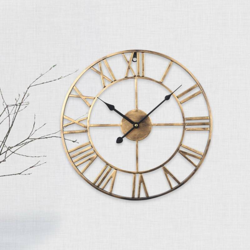 Large Skeleton Metal Roman Wall Clock Big Numerals Giant Open Round Face 40cm UK