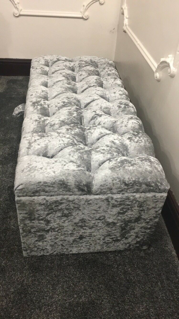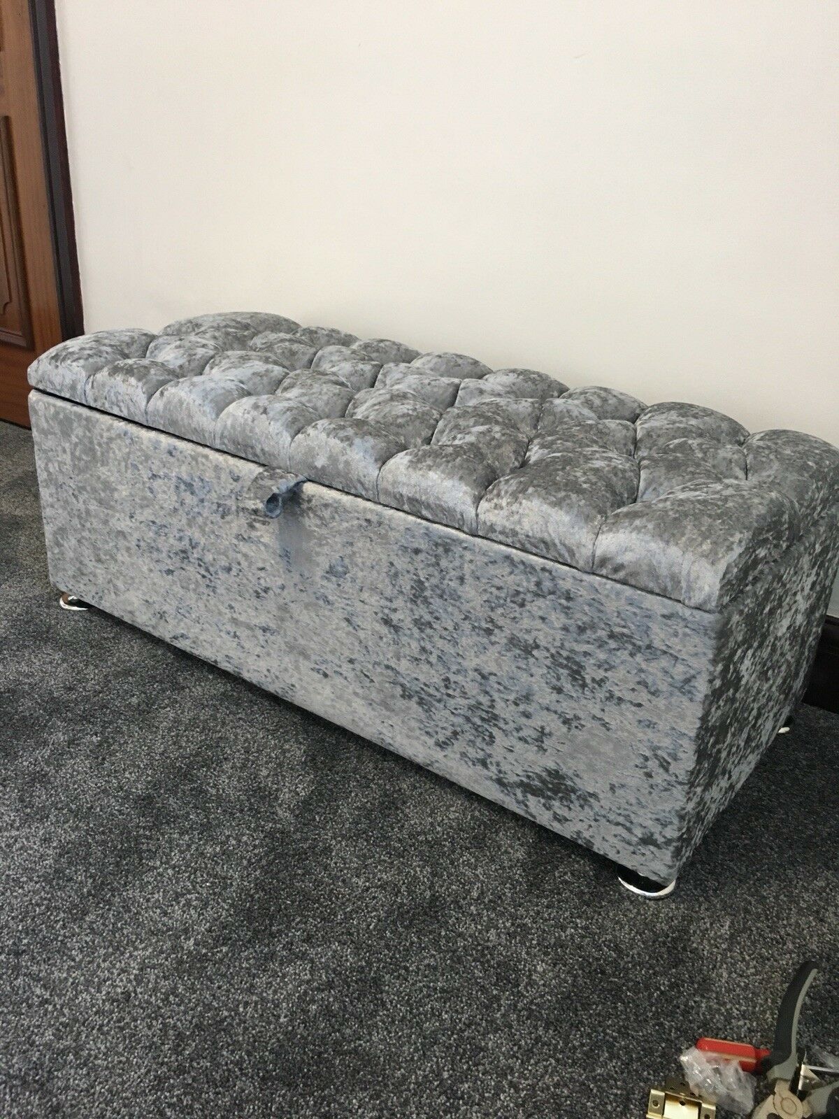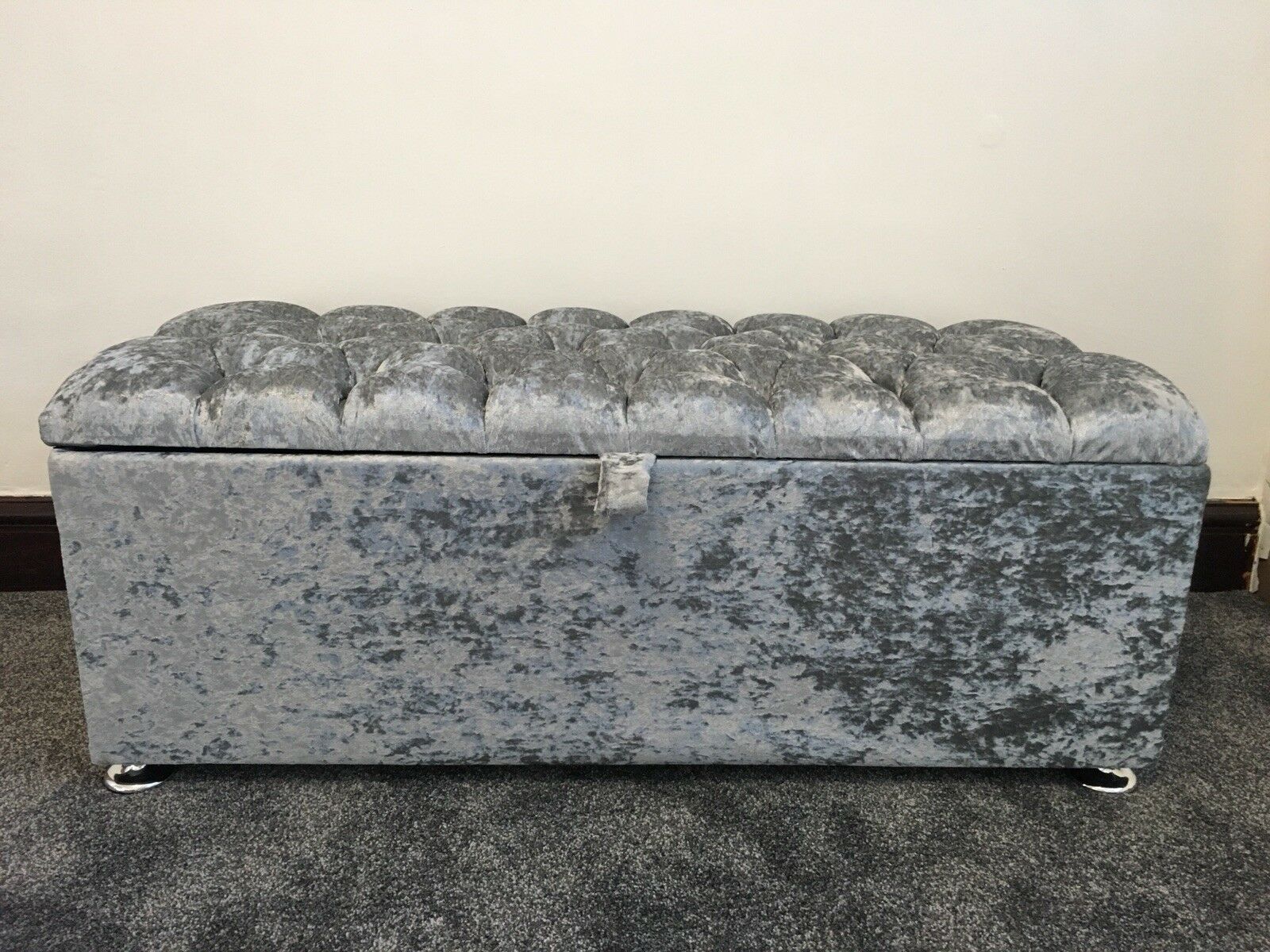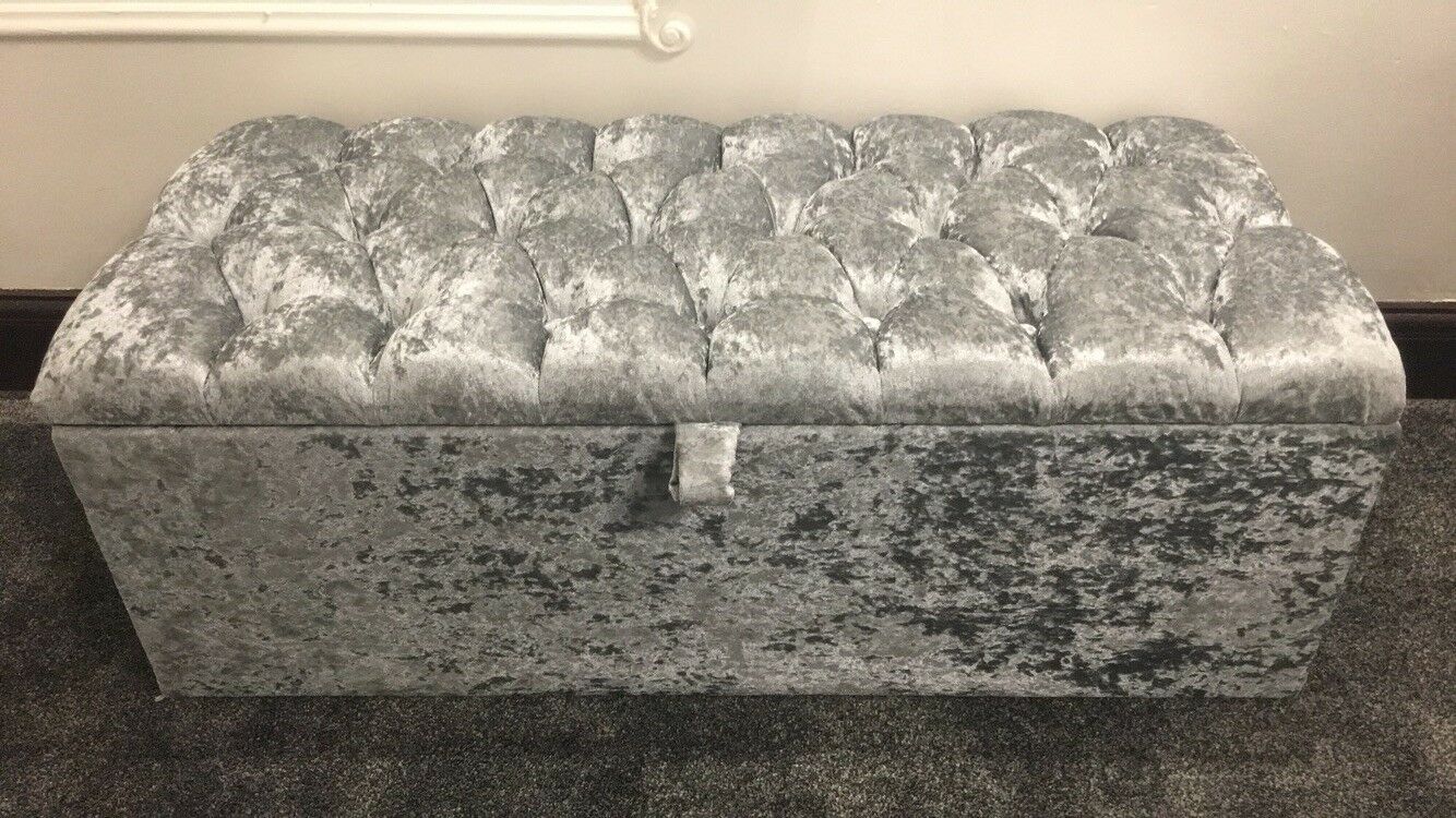 LARGE SLATE GREY CRUSHED VELVET OTTOMAN, TOYS STORAGE FOOTSTOOL, BLANKET BOX.