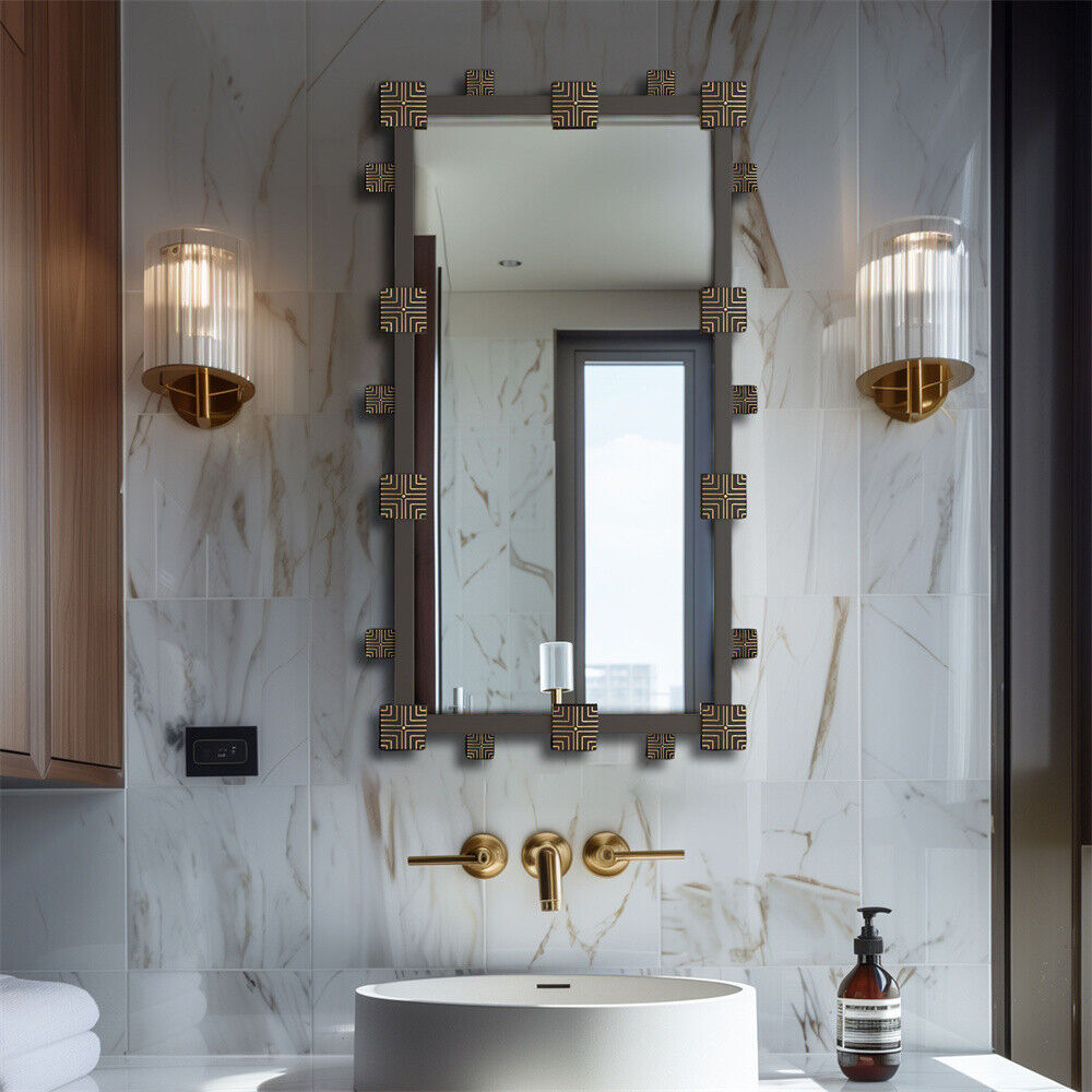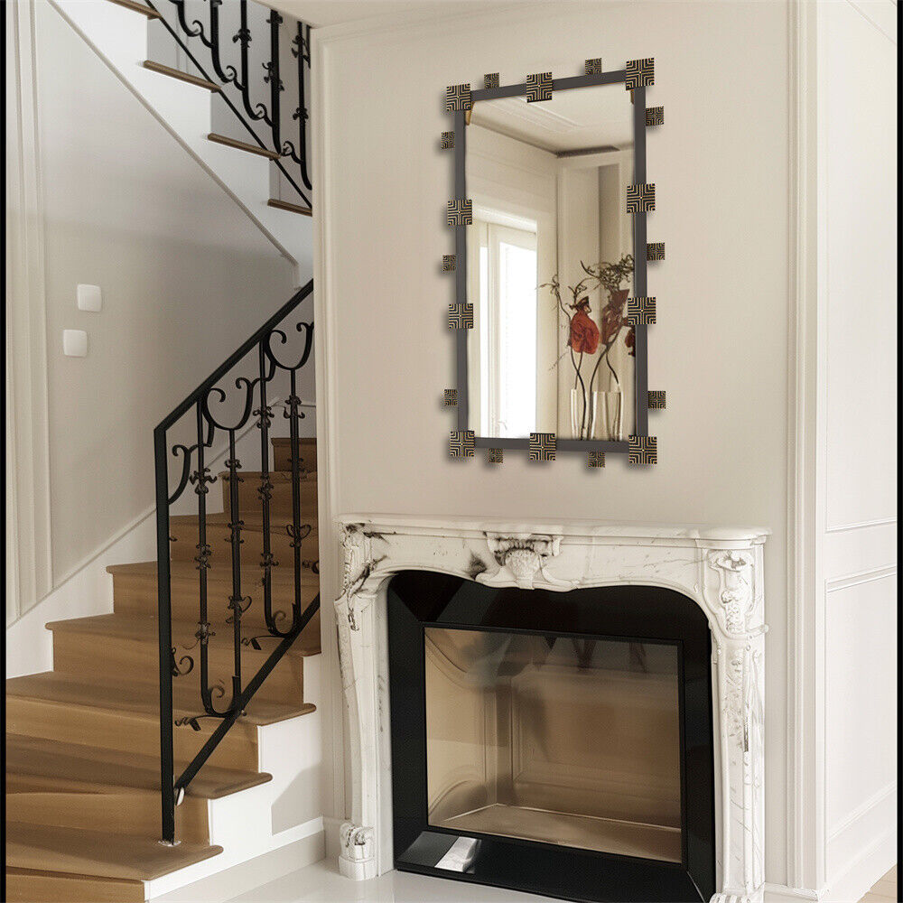 Large Slim Antique Black Metal Frame Rectangular Industrial Wall Mirror 102x52cm