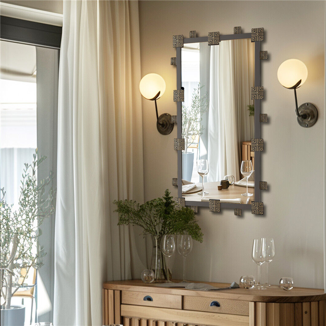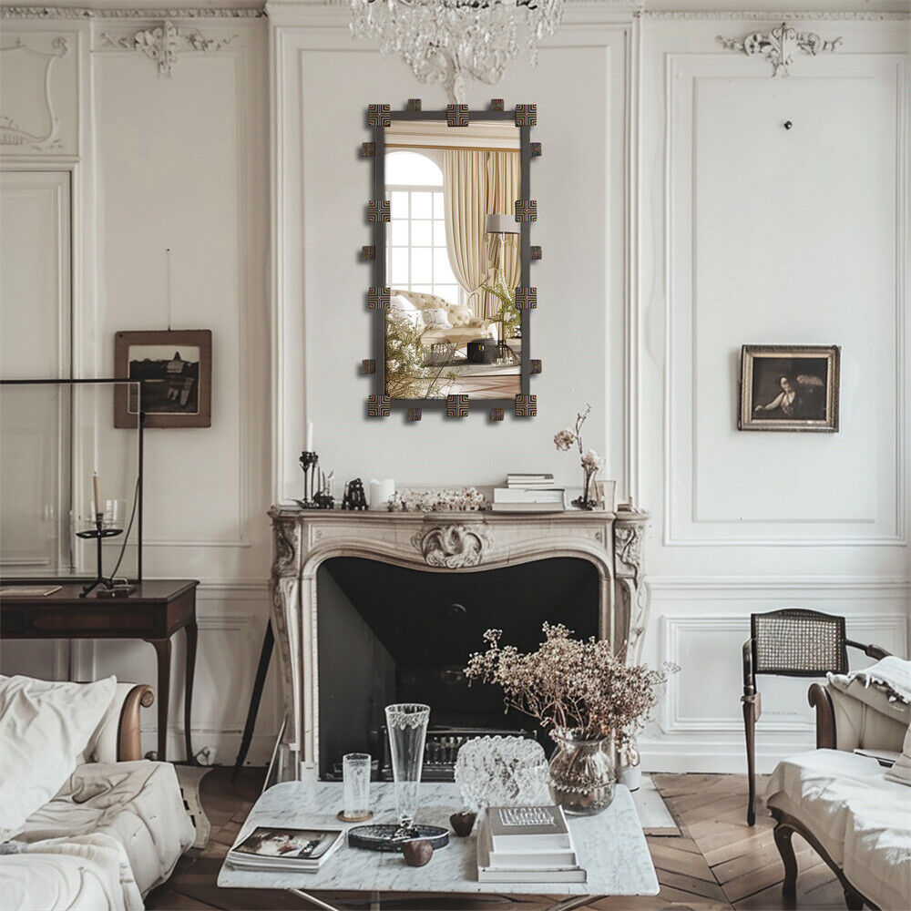 Large Slim Antique Black Metal Frame Rectangular Industrial Wall Mirror 102x52cm