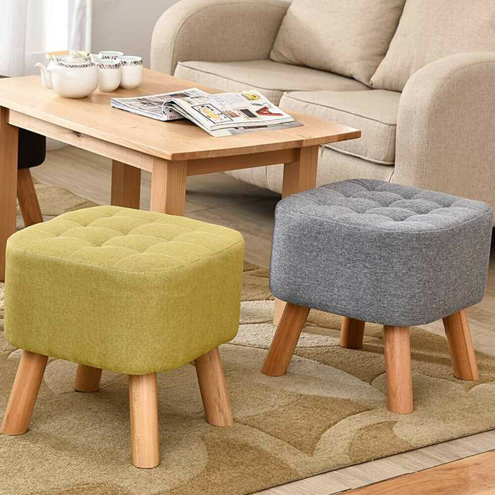 Large Square Pouffe Padded Footstool Sofa Armchair Footrest Ottoman Pine Wood.