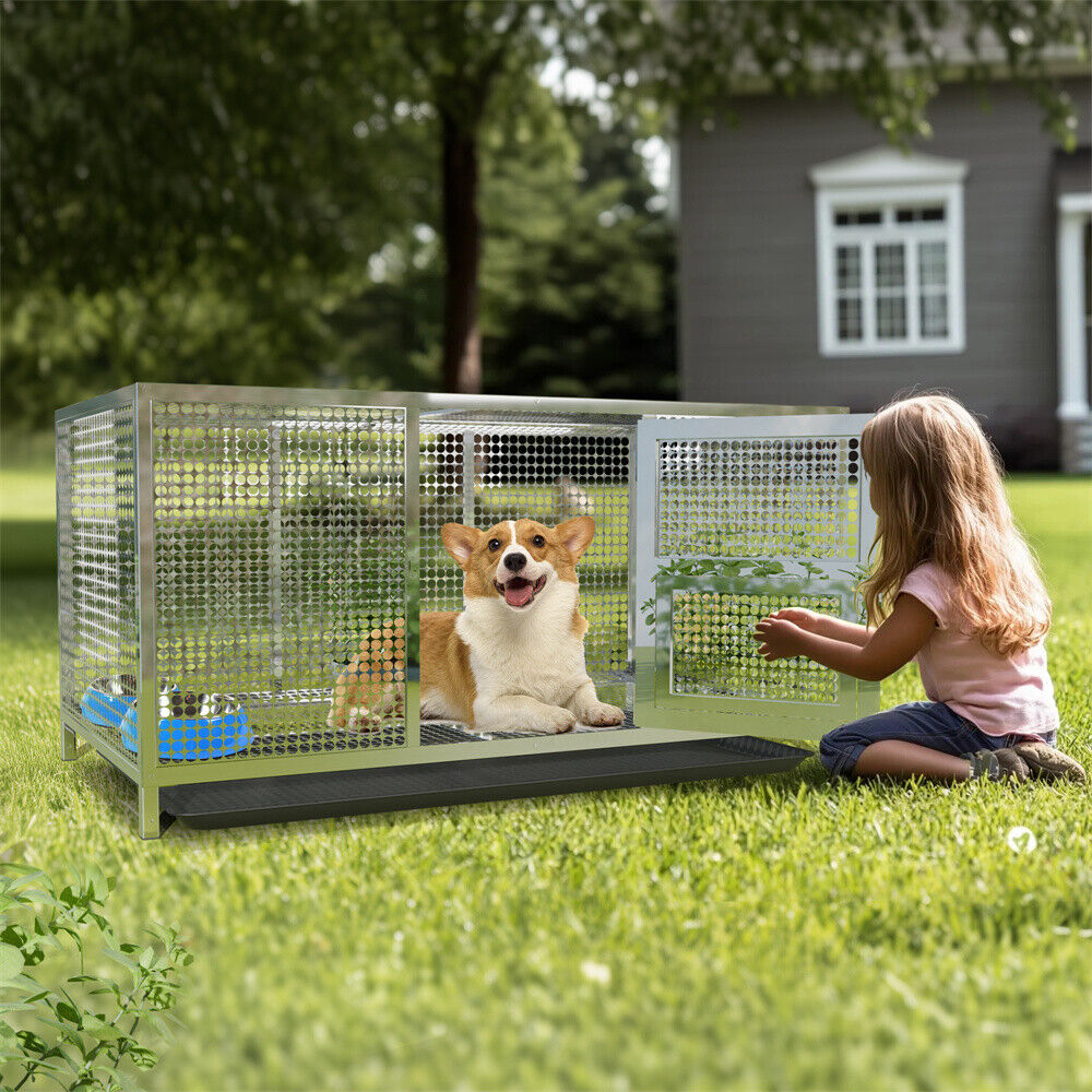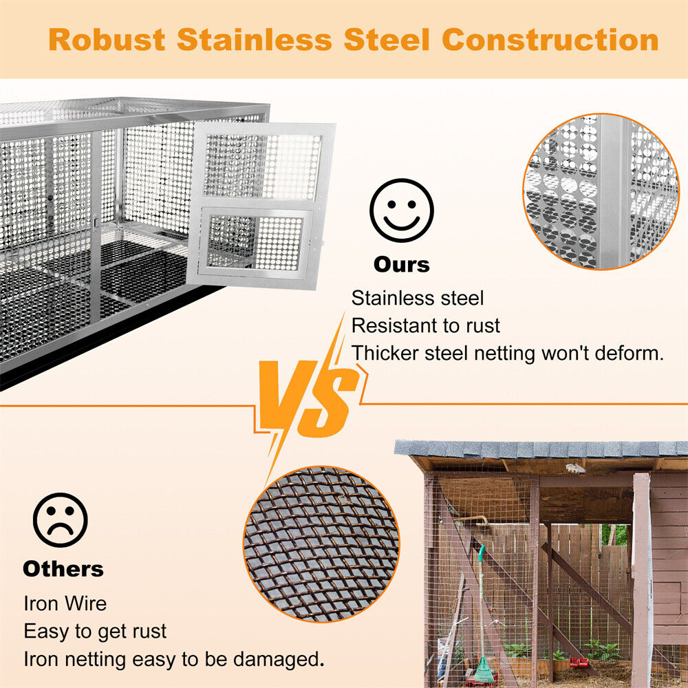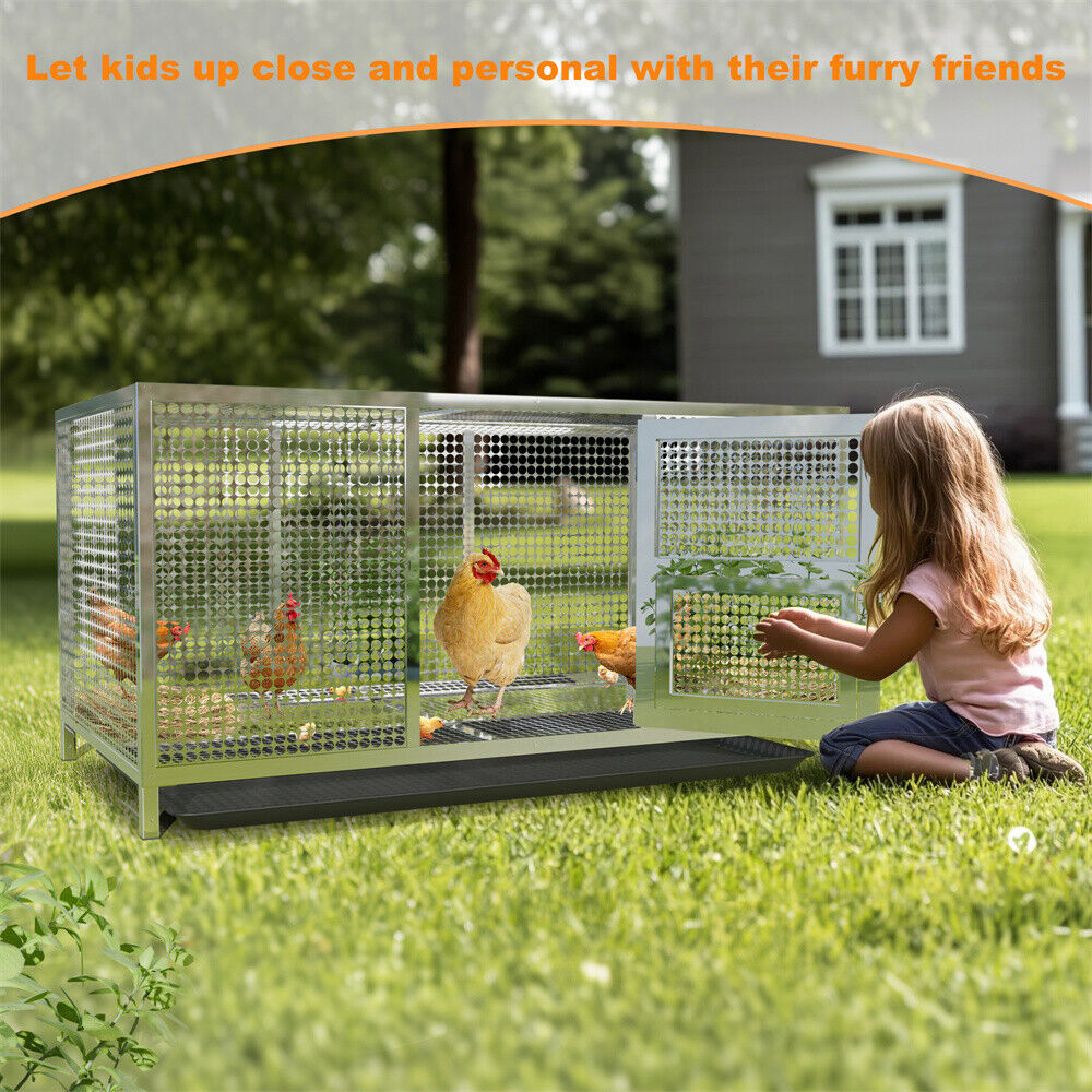 Large Stainless Steel Chicken Coop Run Cage Farm Poultry Pen with Removable Tray