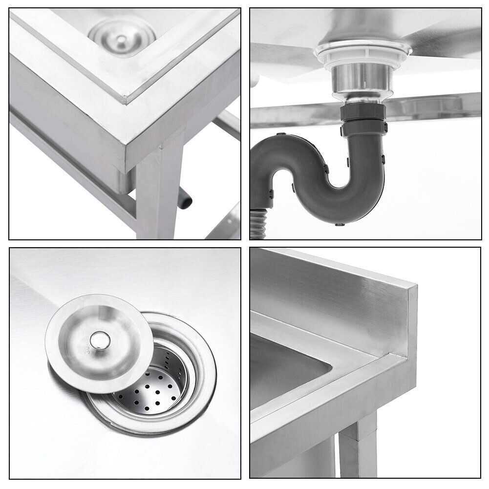 Large Stainless Steel Sink Kitchen Single Bowl Sink Wash Hand Basin with Drainer