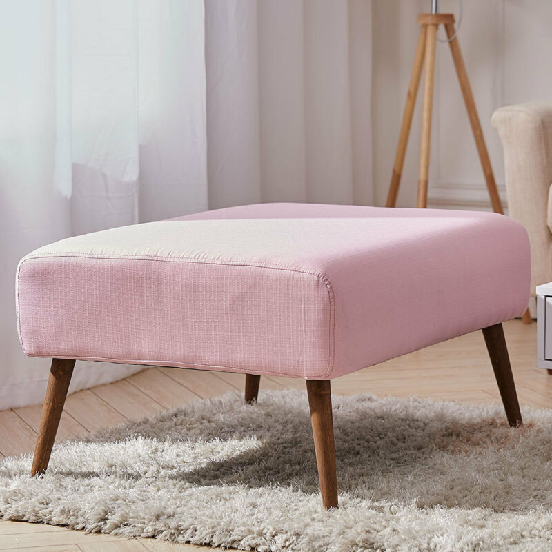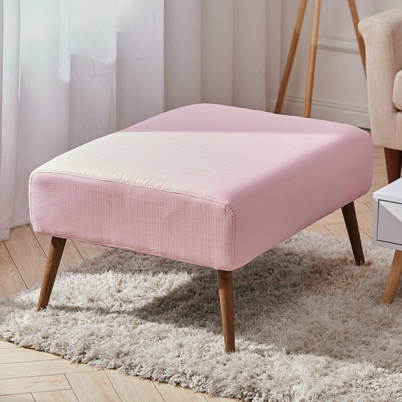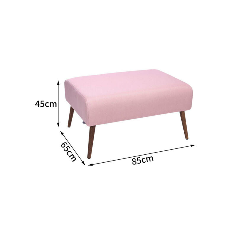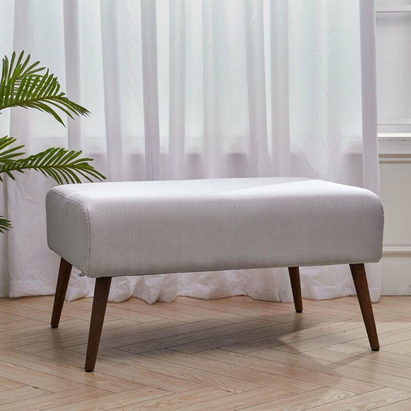 Large Stool Linen Upholstered Wooden Leg Bench Footstool Pouffe Seat Side Chair
