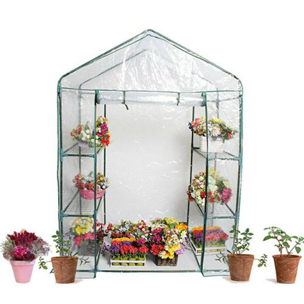 Large Walk In Greenhouse PVC Plastic Garden Grow Green House with 4 Shelves