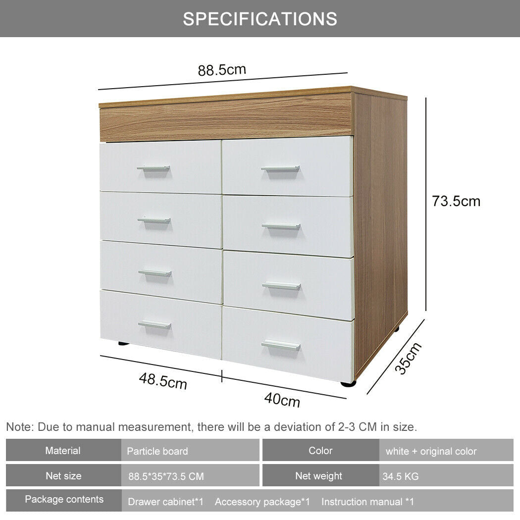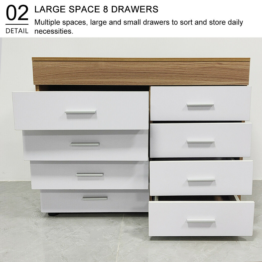 Large White Chest Of Drawers Wooden Bedside 8 Drawer Cabinet Bedroom Furniture