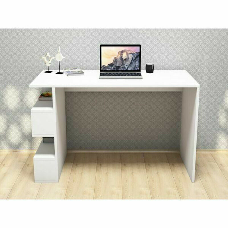 Large White Computer Desk Table Laptop Home Office Shelving Shelves Workstation