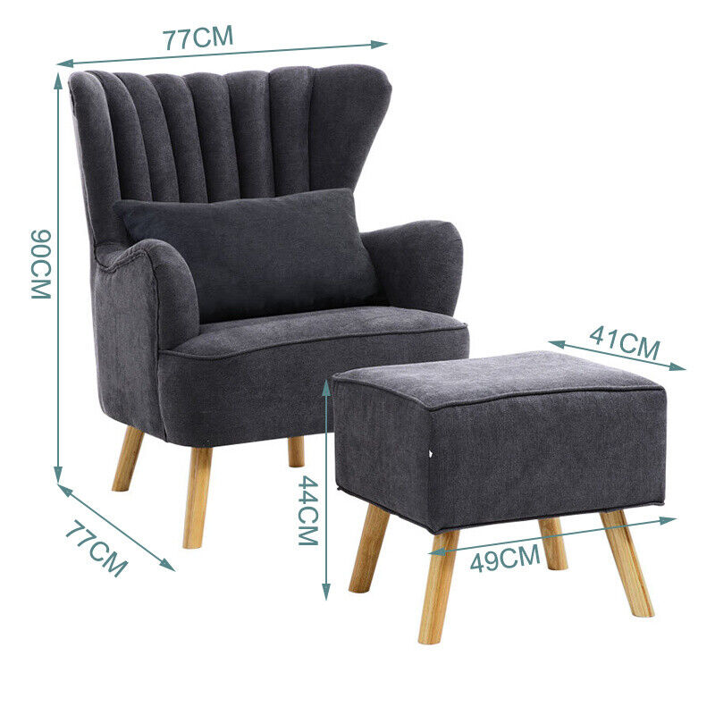 Large Wingback Occasional Accent Chair Armchair Tub Chair with Cushion/Footstool