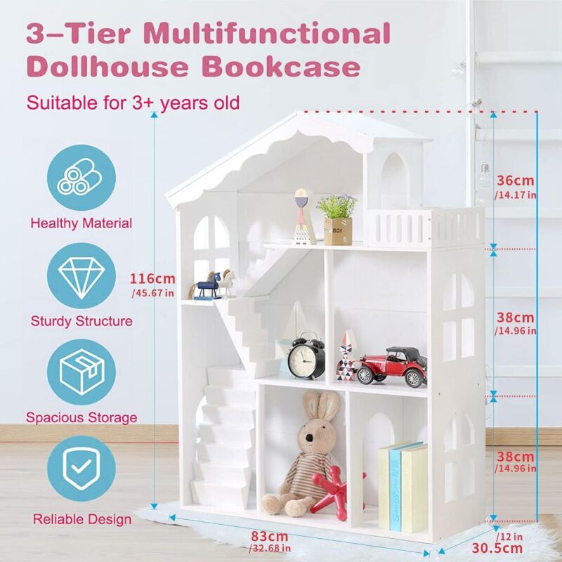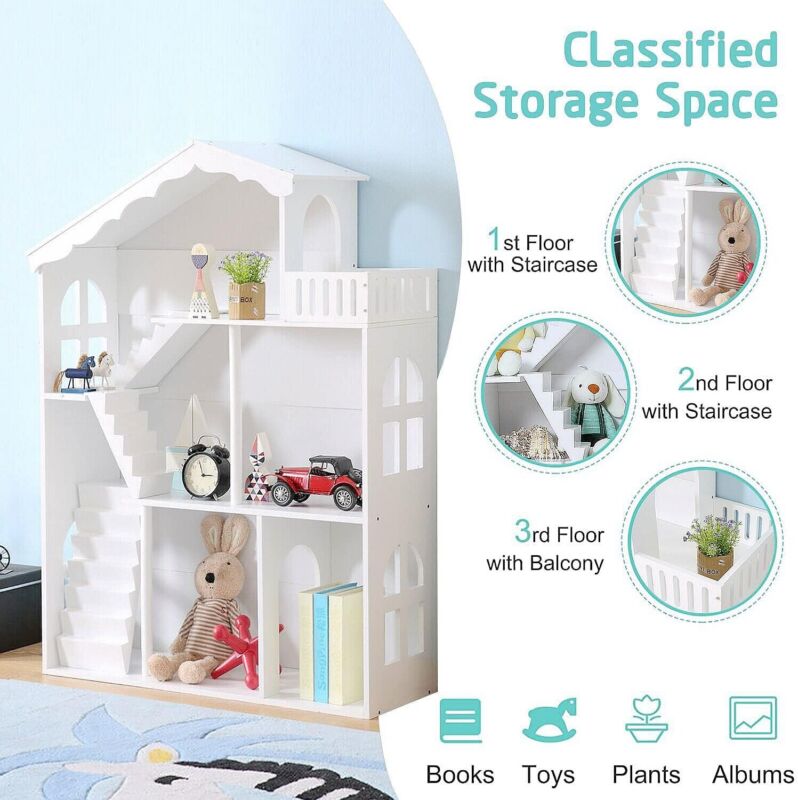Large Wooden Bookcase for Kids Book Shelf Toy Organizer Display Stand Doll House
