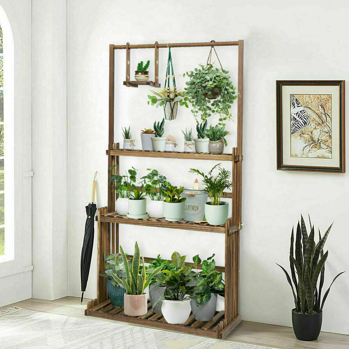 Large Wooden Flower Plant Stand Tall Hanging Shelf Planter Bonsai Display Rack