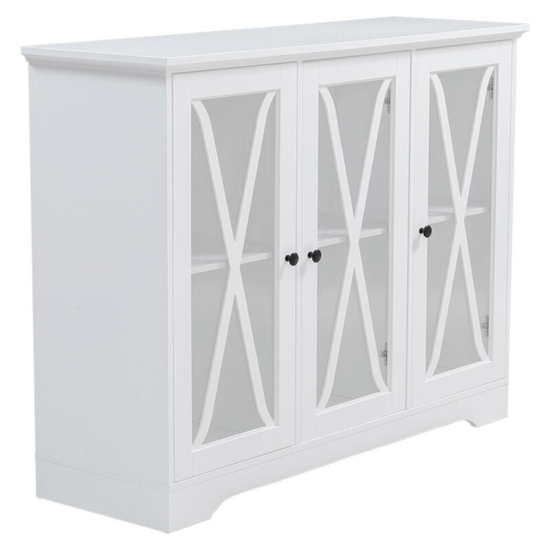 Large Wooden Sideboard Cabinet Side Cupboard Glass Door Storage Display Buffet
