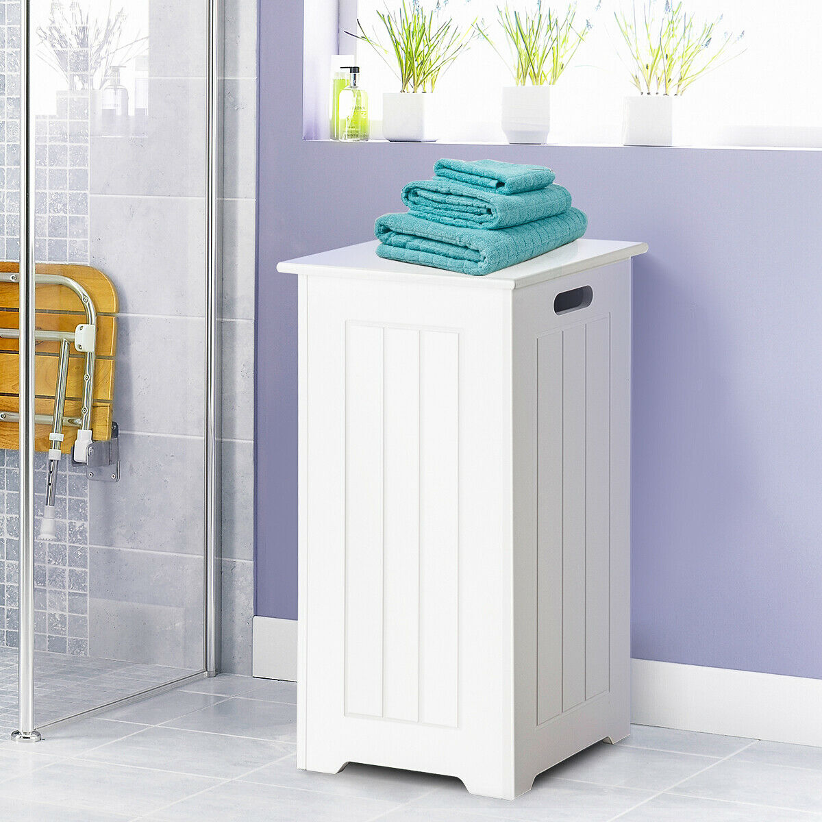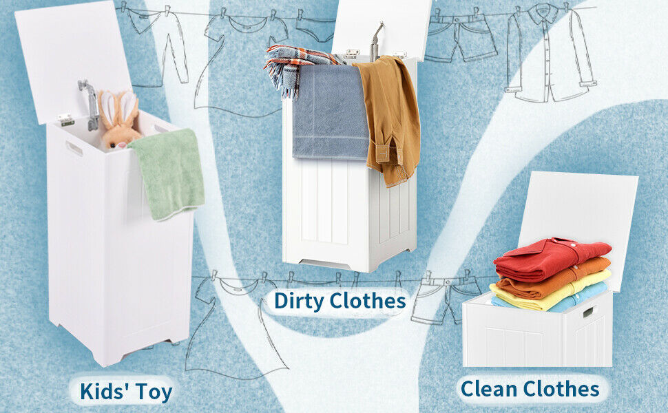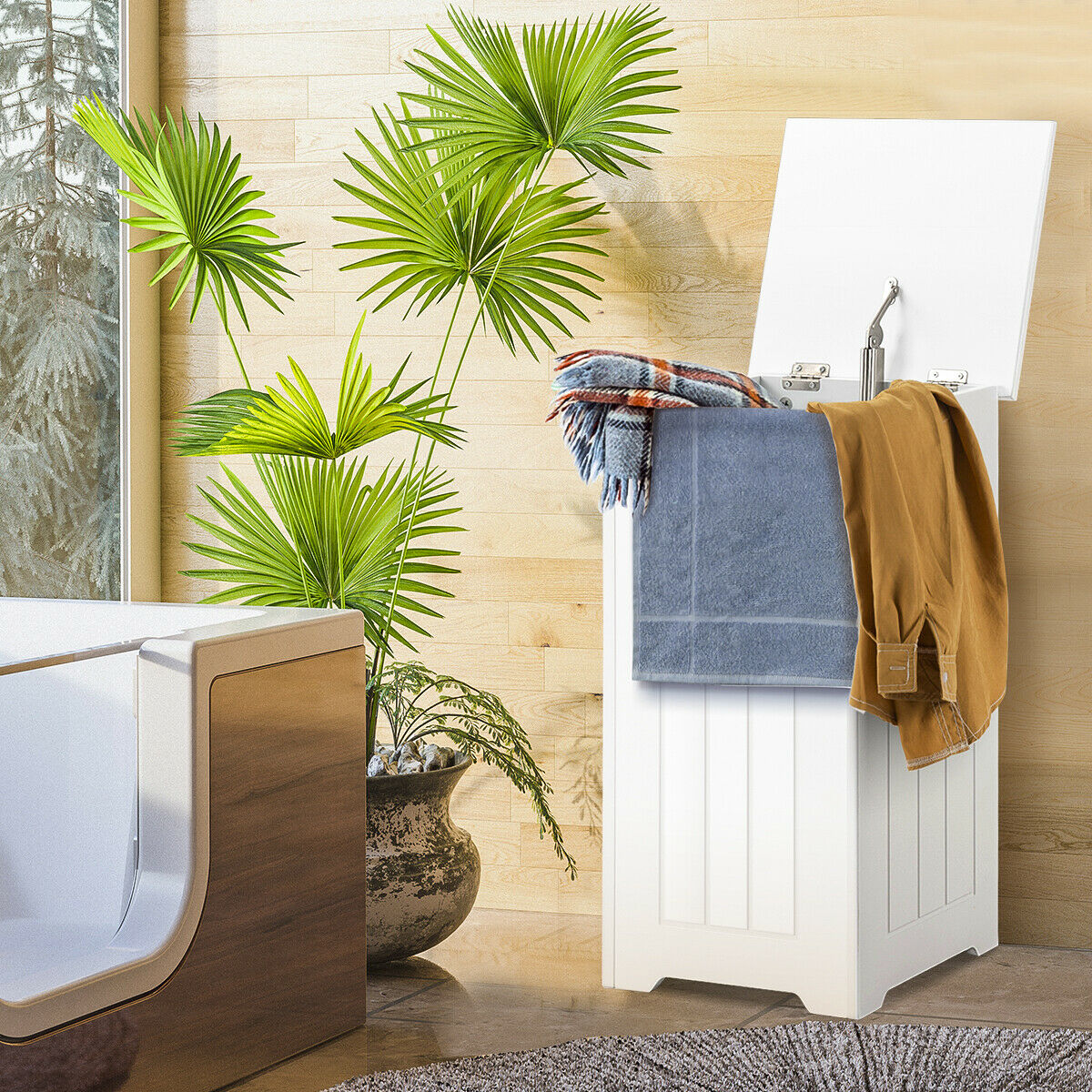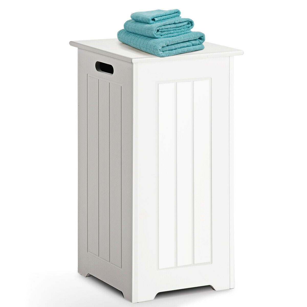 Laundry Basket Bathroom Bin Clothes Storage Wooden Chest Hinged Lid Hamper White