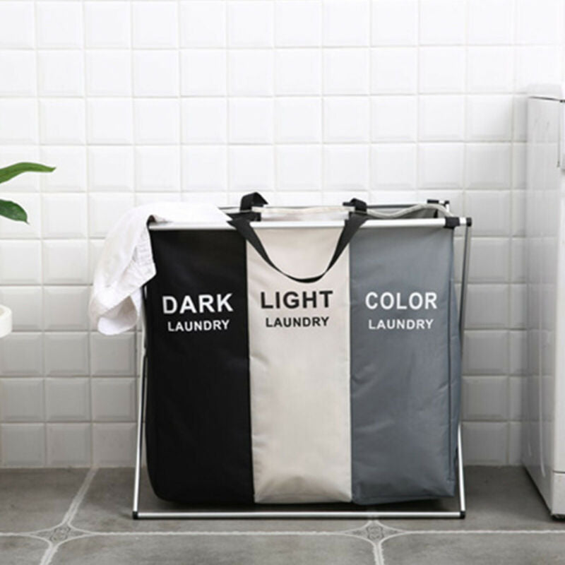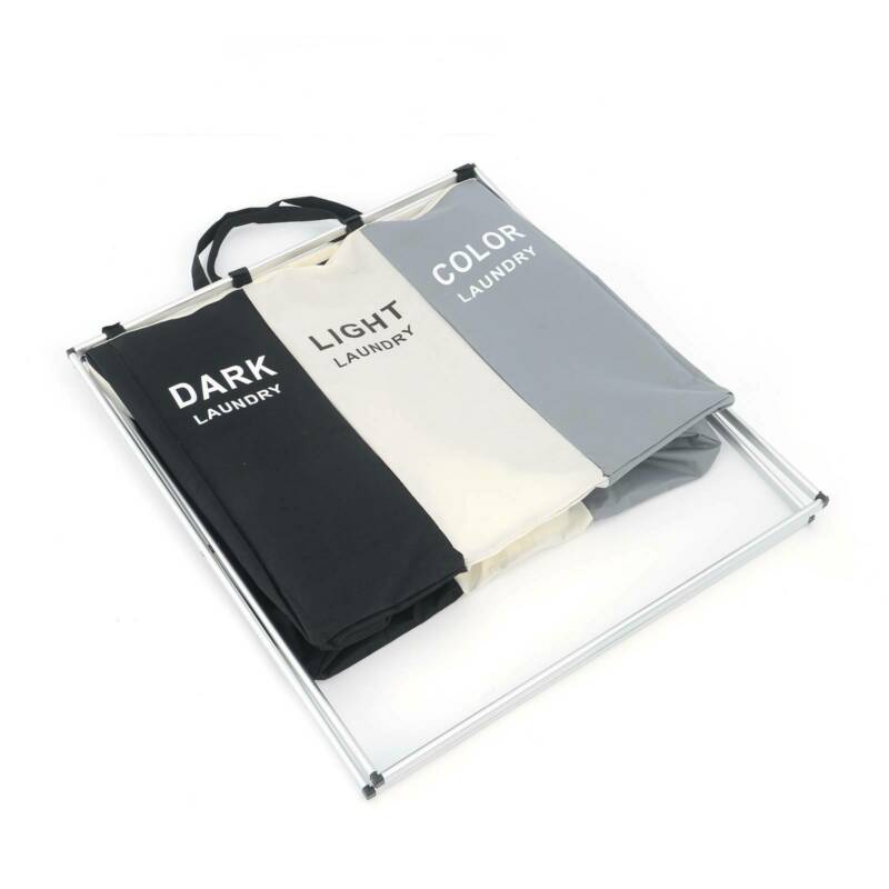 Laundry Basket Hamper Clothes Bin Organiser Folding Light Dark Colour 3 Section