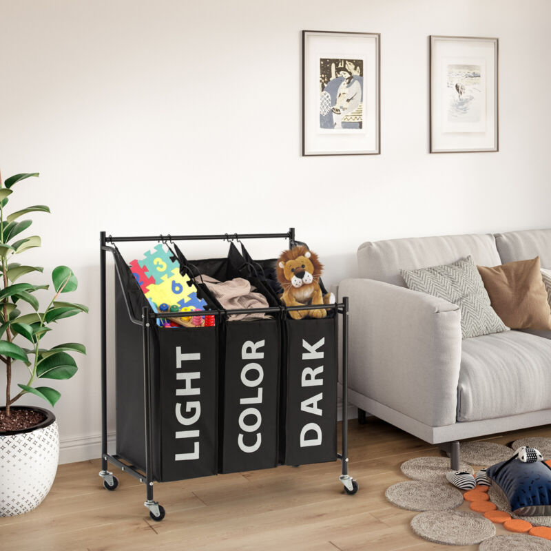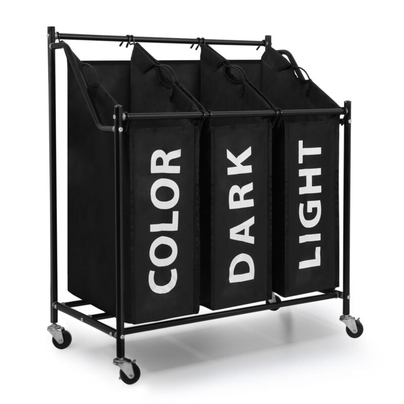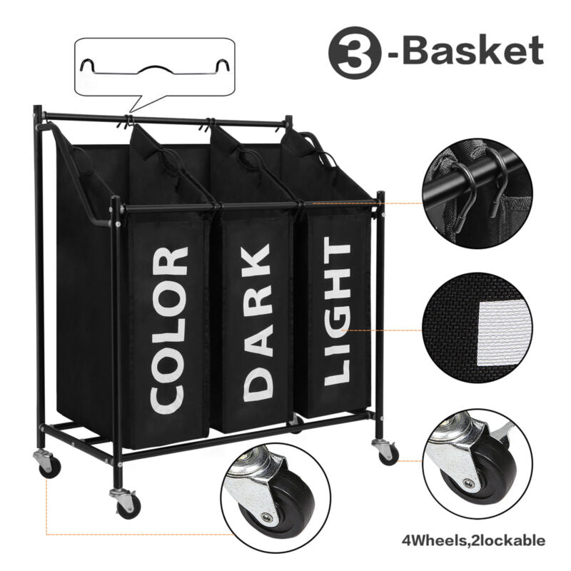 Laundry Basket Sorter Cart Hamper Rolling Clothes Bin Trolley on Wheels 3 Bag