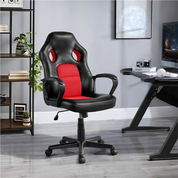 Leather Office Gaming Chair Adjustable Computer Desk Chair for Study Games Red