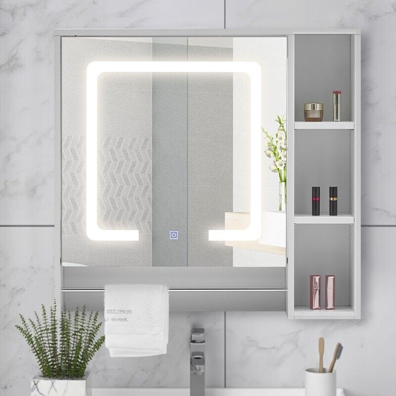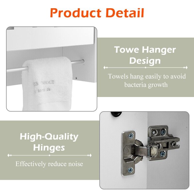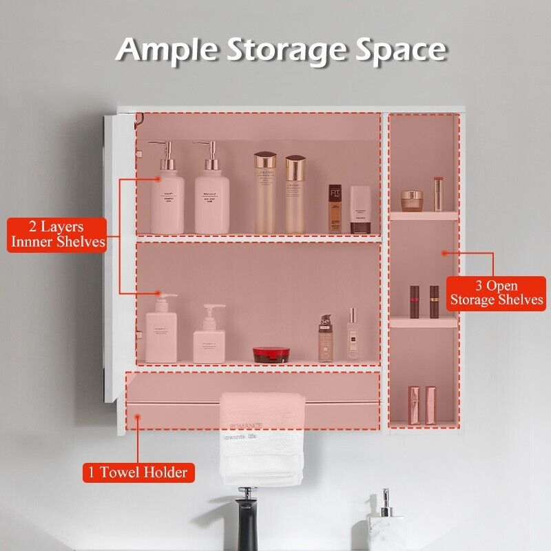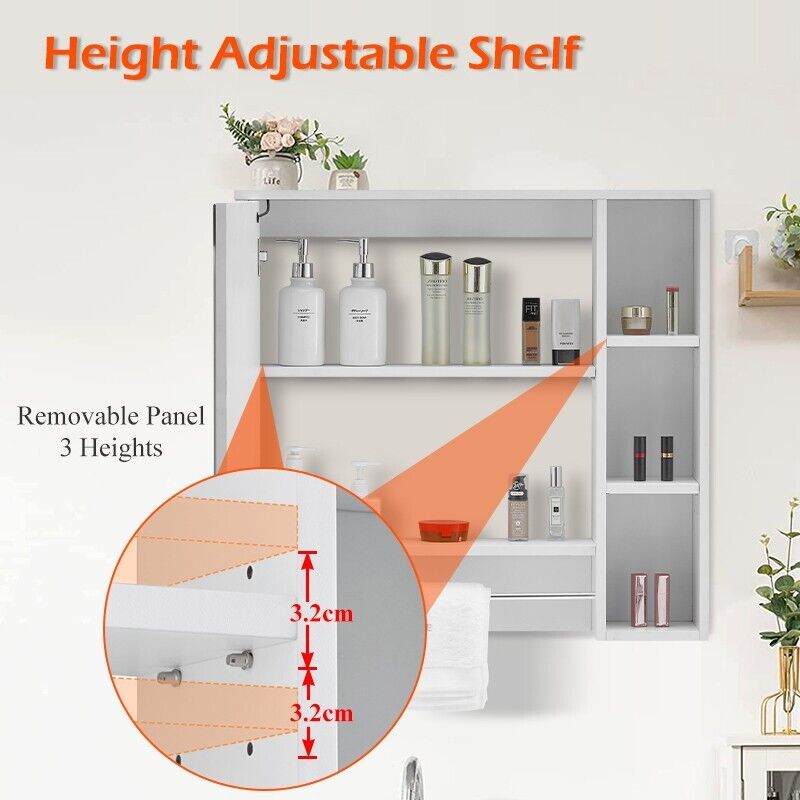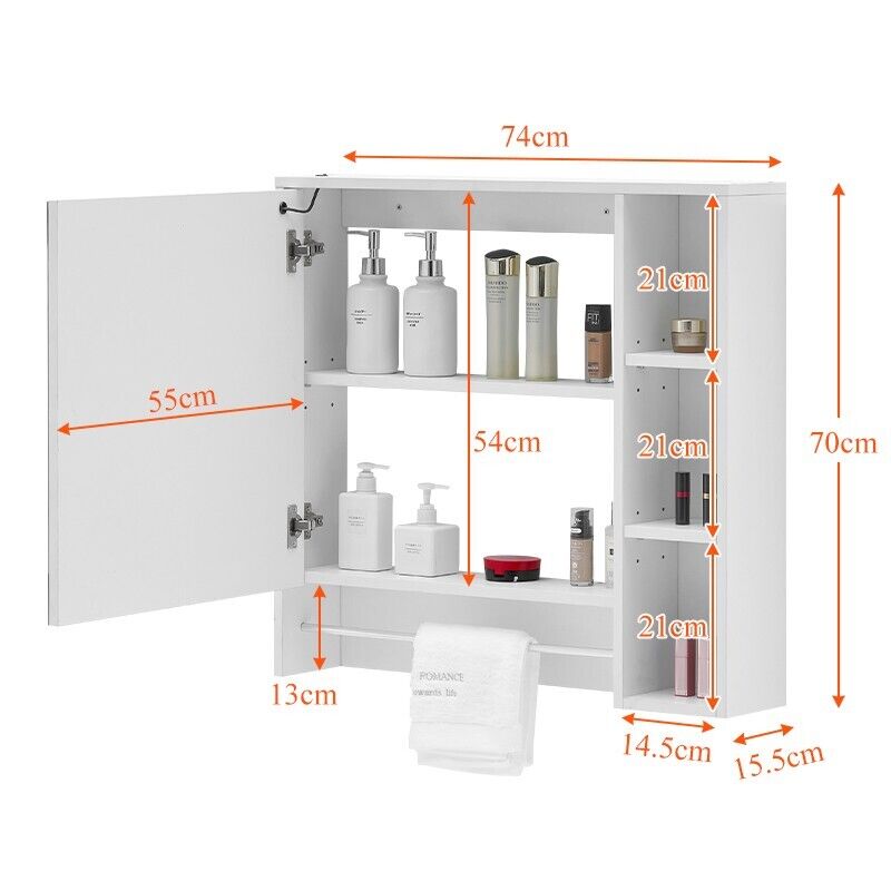 LED Bathroom Cabinet Mirror Storage Unit 5 Shelf Towel Hanger White Furniture