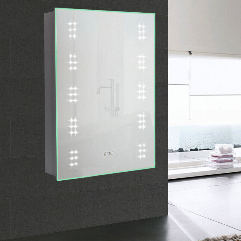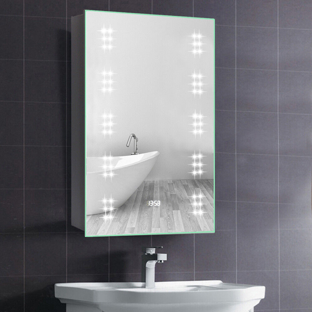 LED Bathroom Mirror Cabinet With Demister Pad Sensor Shaver Socket Wall Mounted