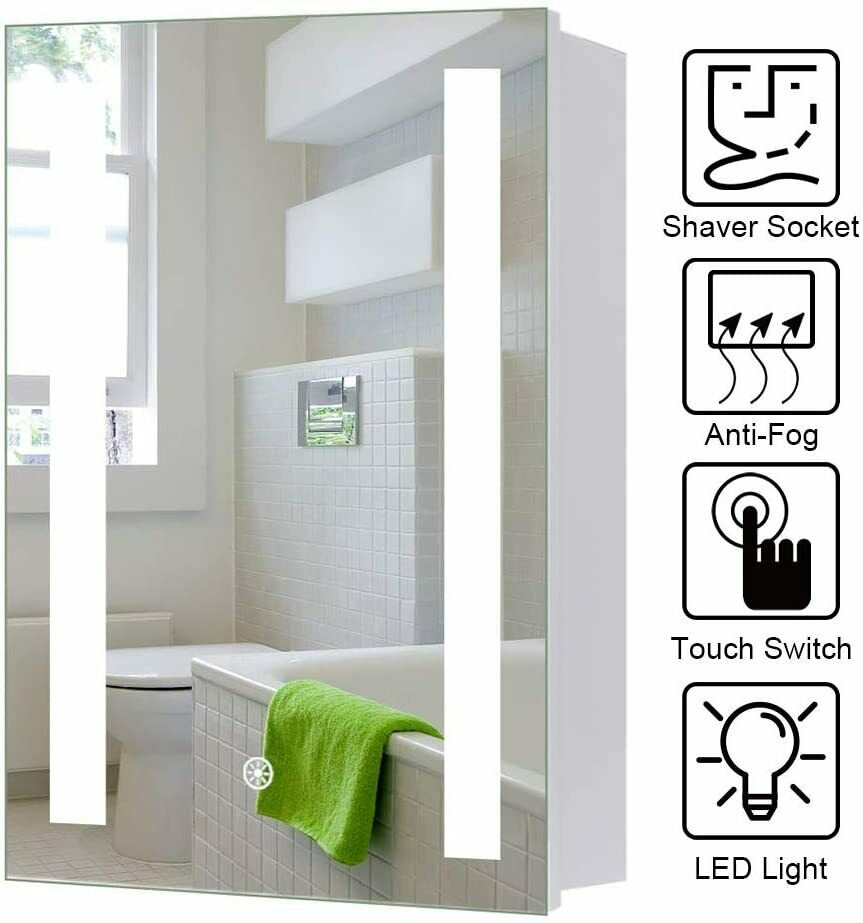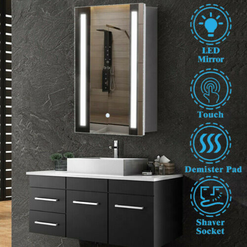 LED Bathroom Mirror Cabinet With Shaver Socket Storage/Demister/Sensor Switch UK