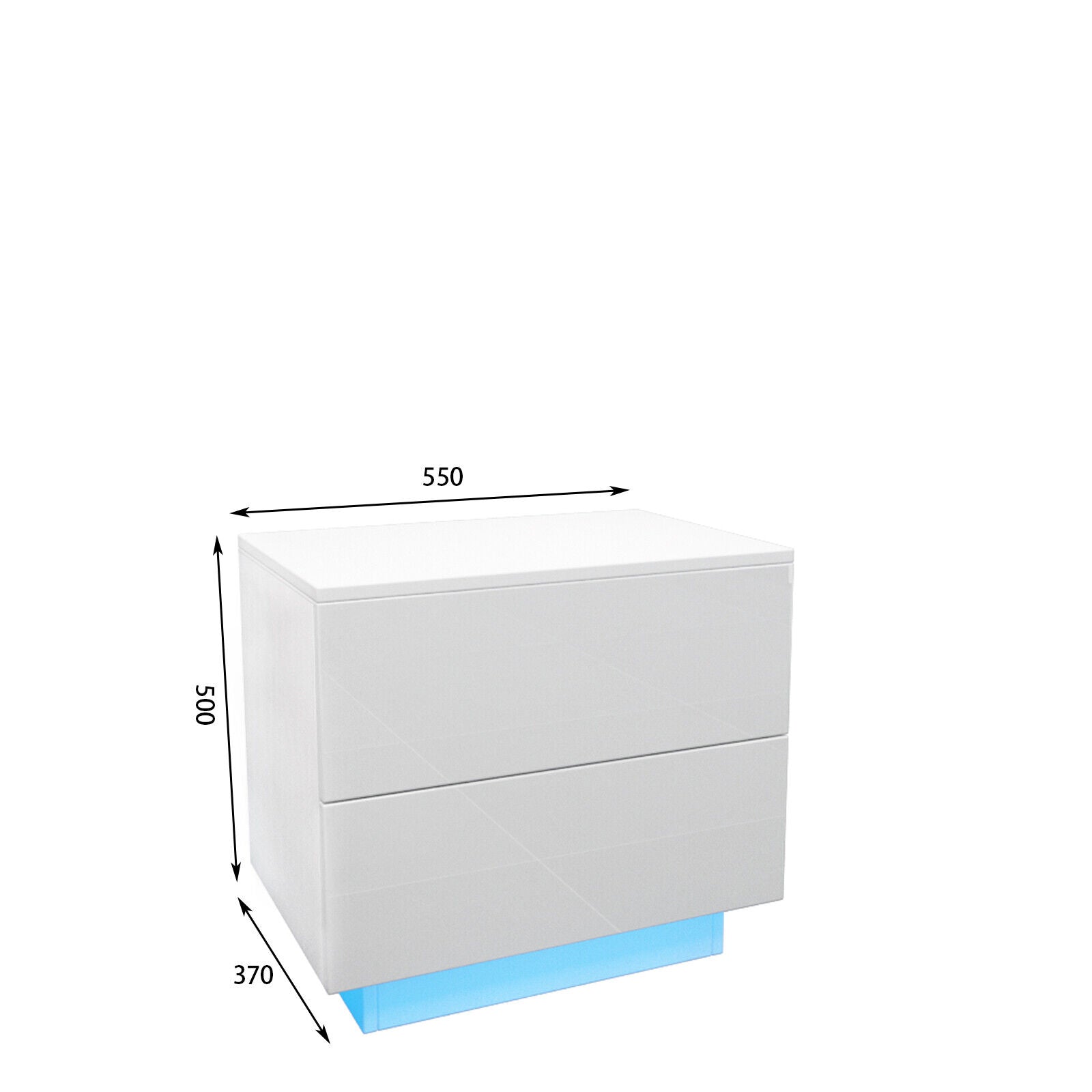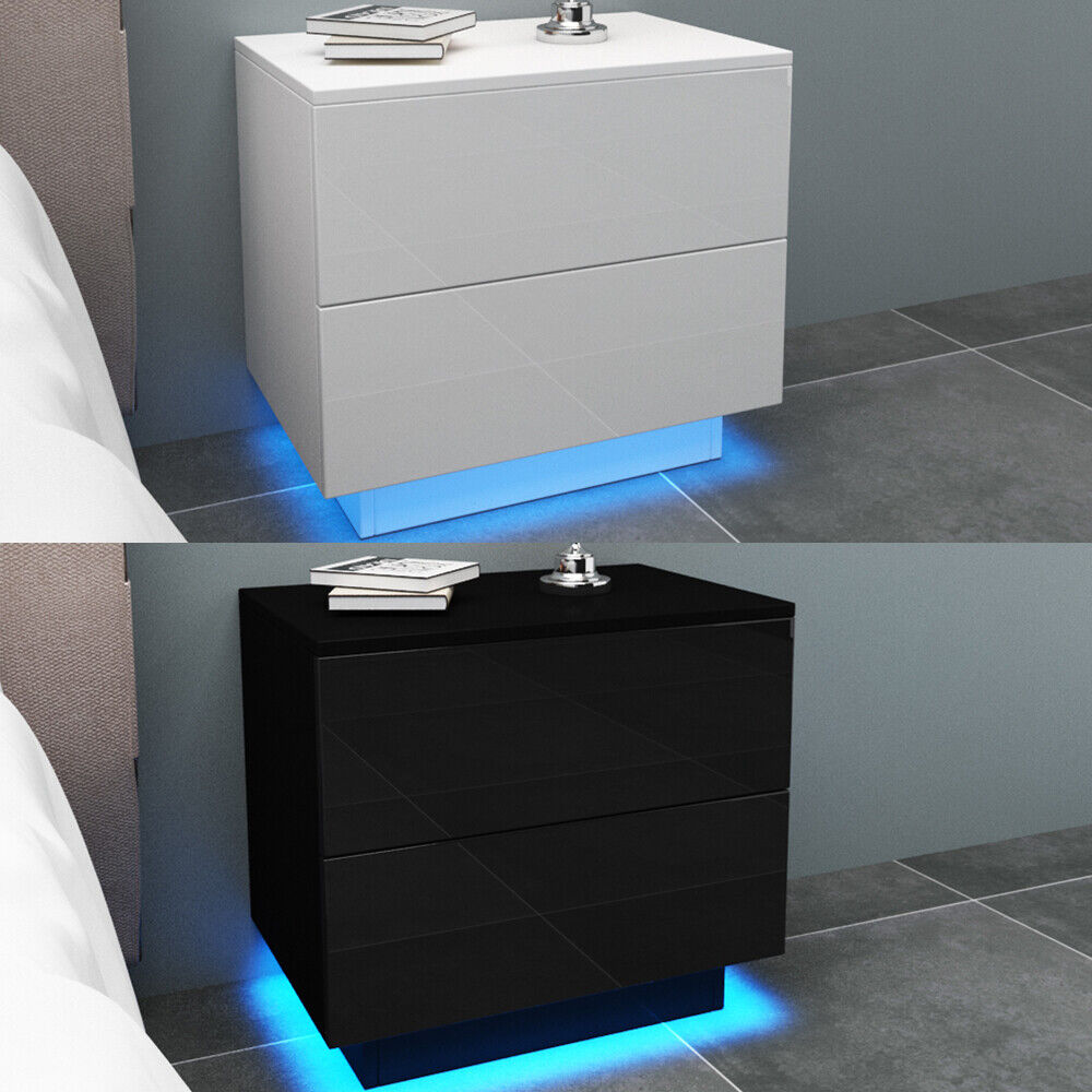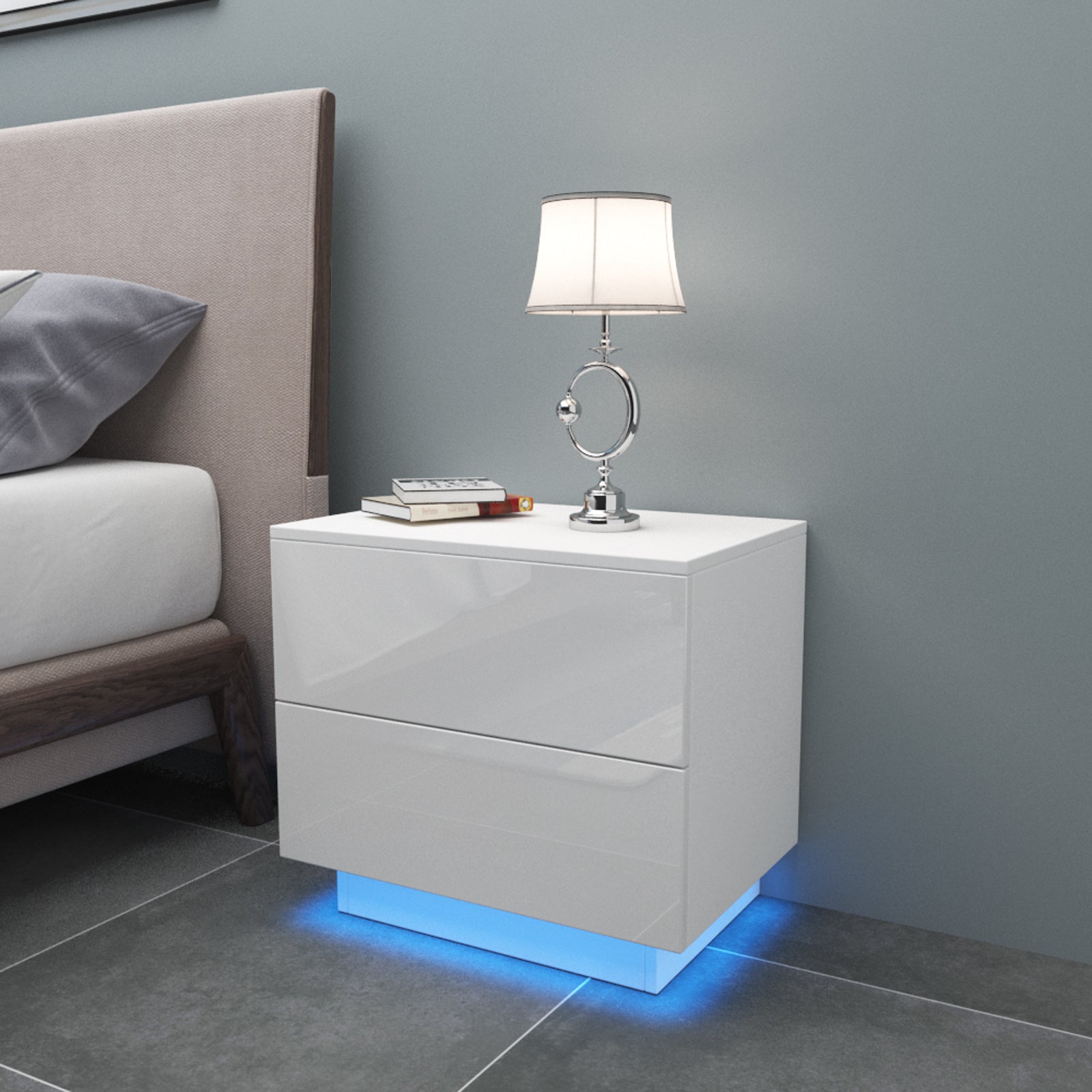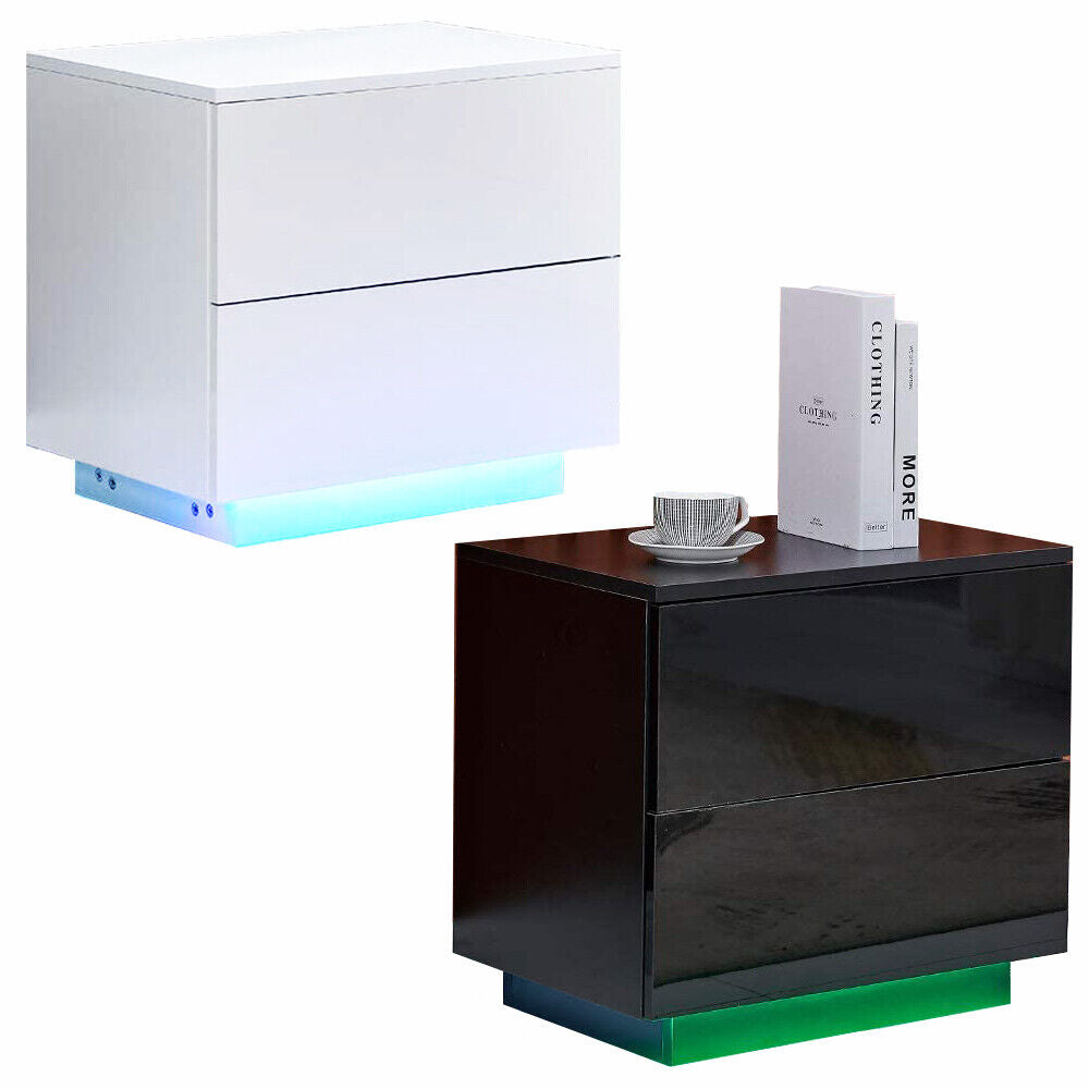 LED Bedside Table High Gloss Nightstand RGB Lights with 2 Drawer Storage Cabinet