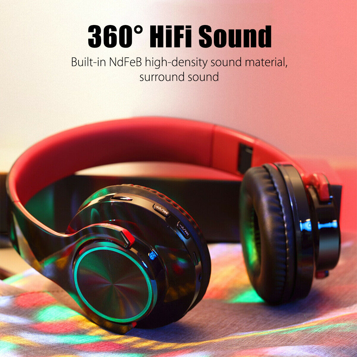 - Features B: Colorful LED Light, Foldable, Stereo, HIFI Sound,