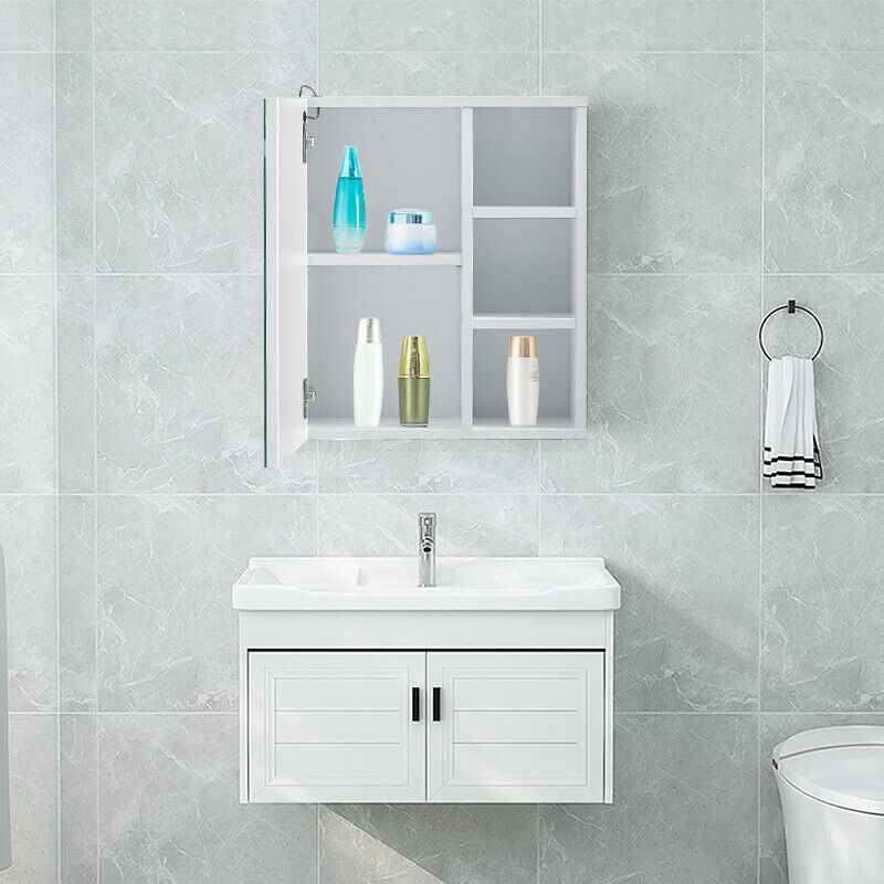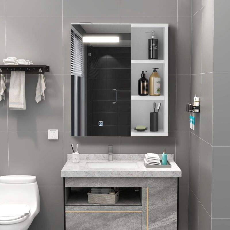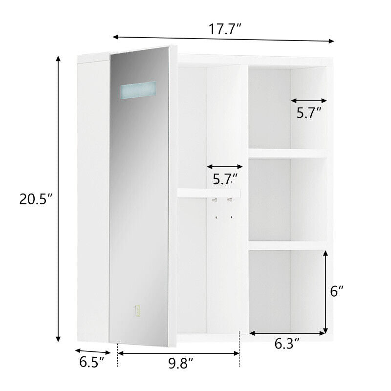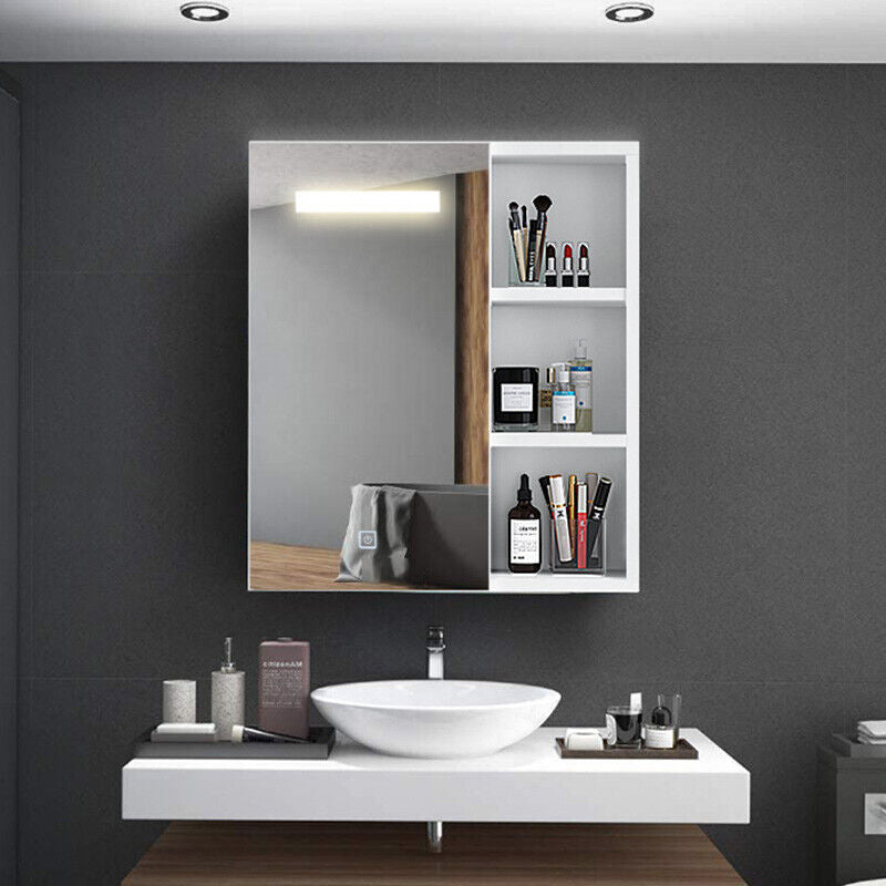 LED Cabinet Wall Mounted Mirror 1 Door Bath Unit Storage Cupboard White Bathroom