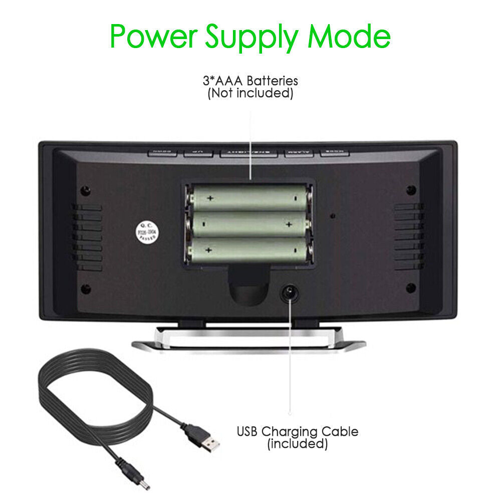 LED Curved Digital Alarm Clock Mirror Clock w/ Temperature Time Display