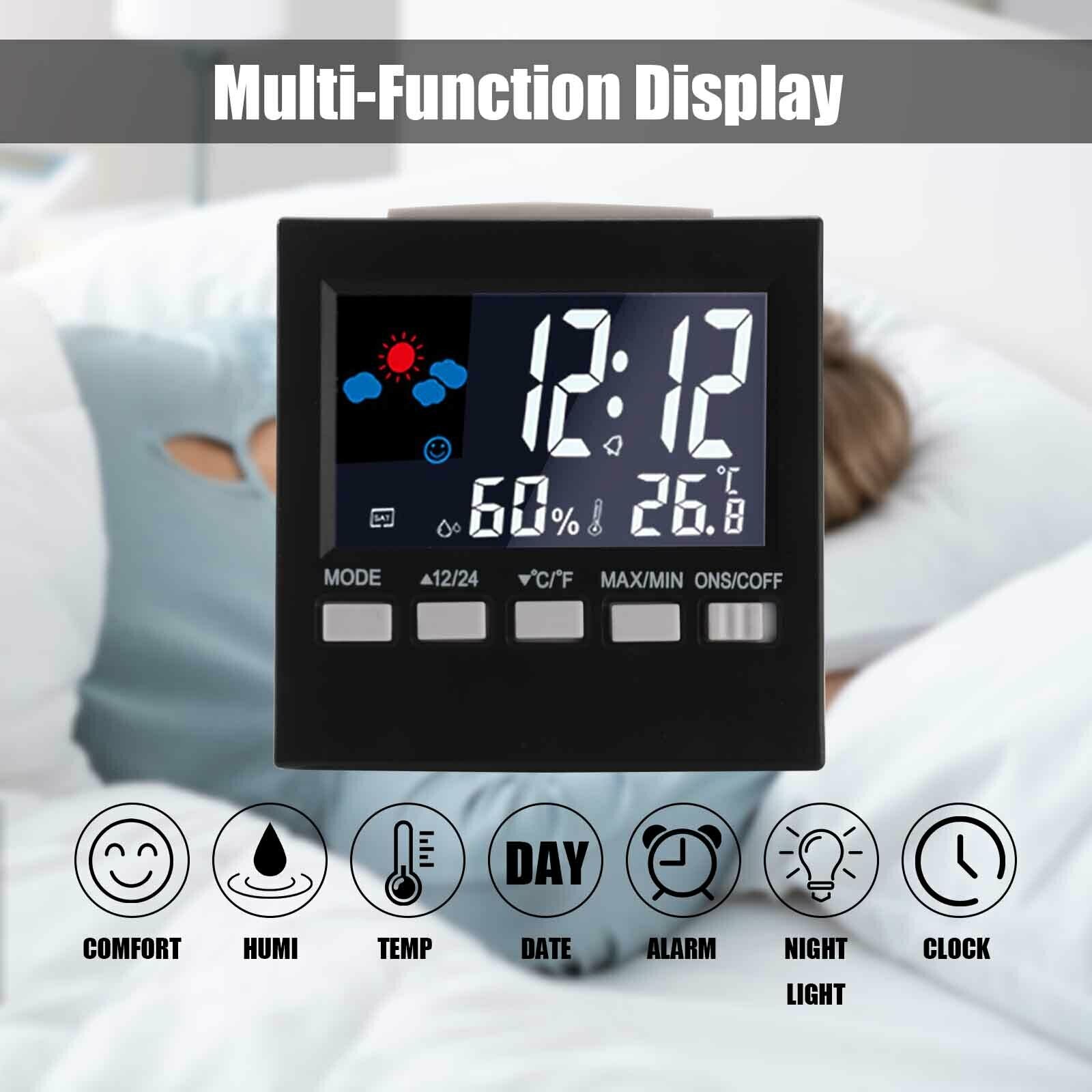LED Digital LCD Display Alarm Clock with Temperature Calendar Weather Station