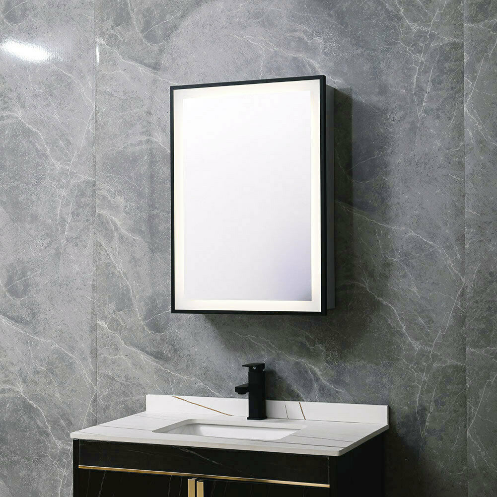 LED Dimmable Wall Cabinet Mirror Bathroom Modern Shelf Storage Demister Pad UK