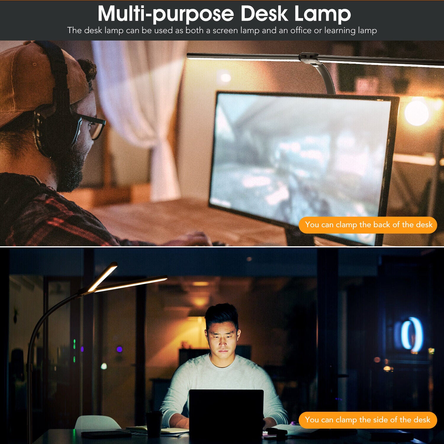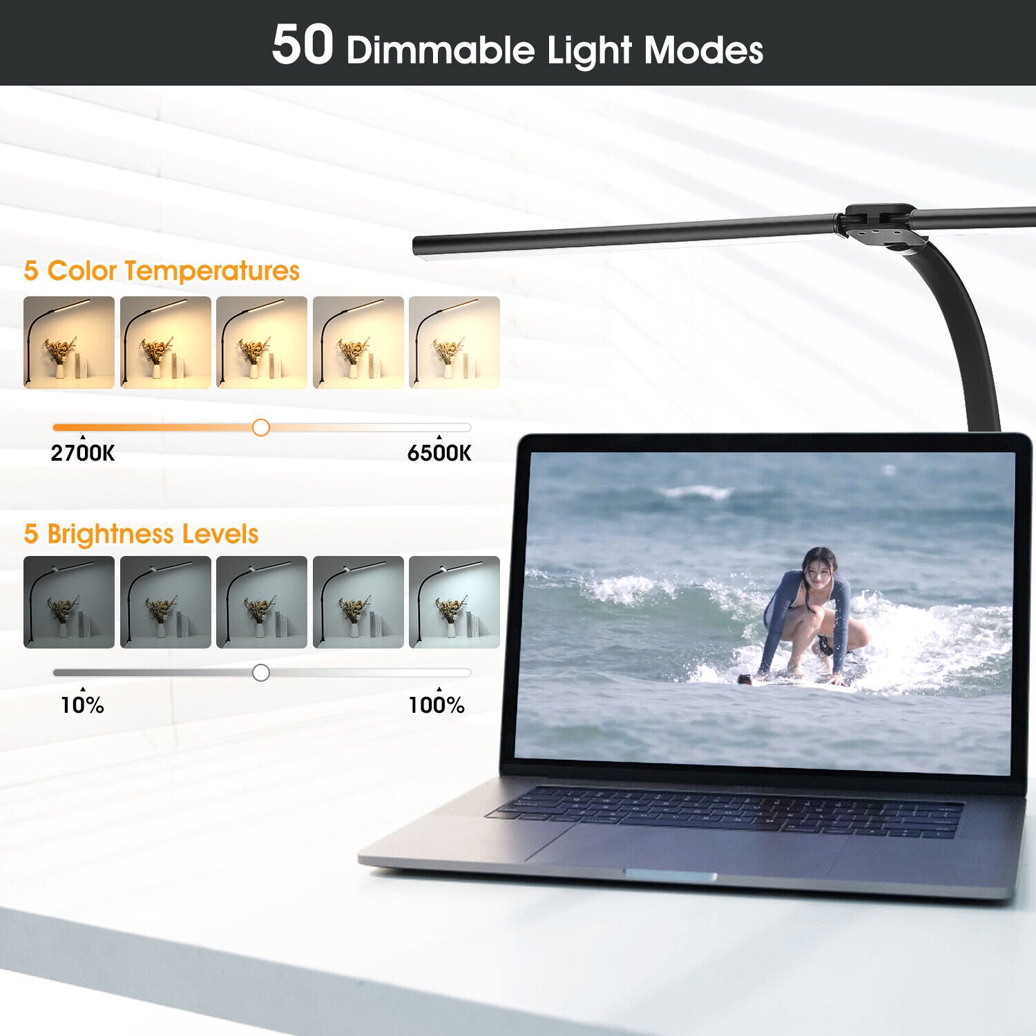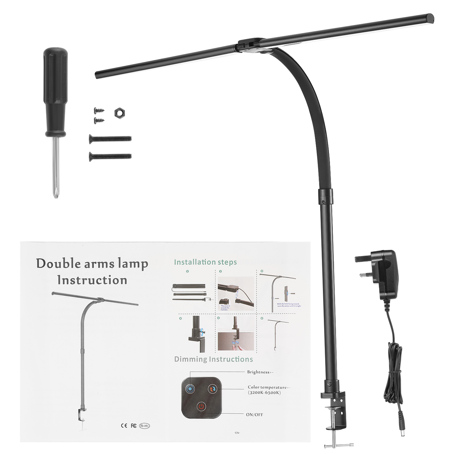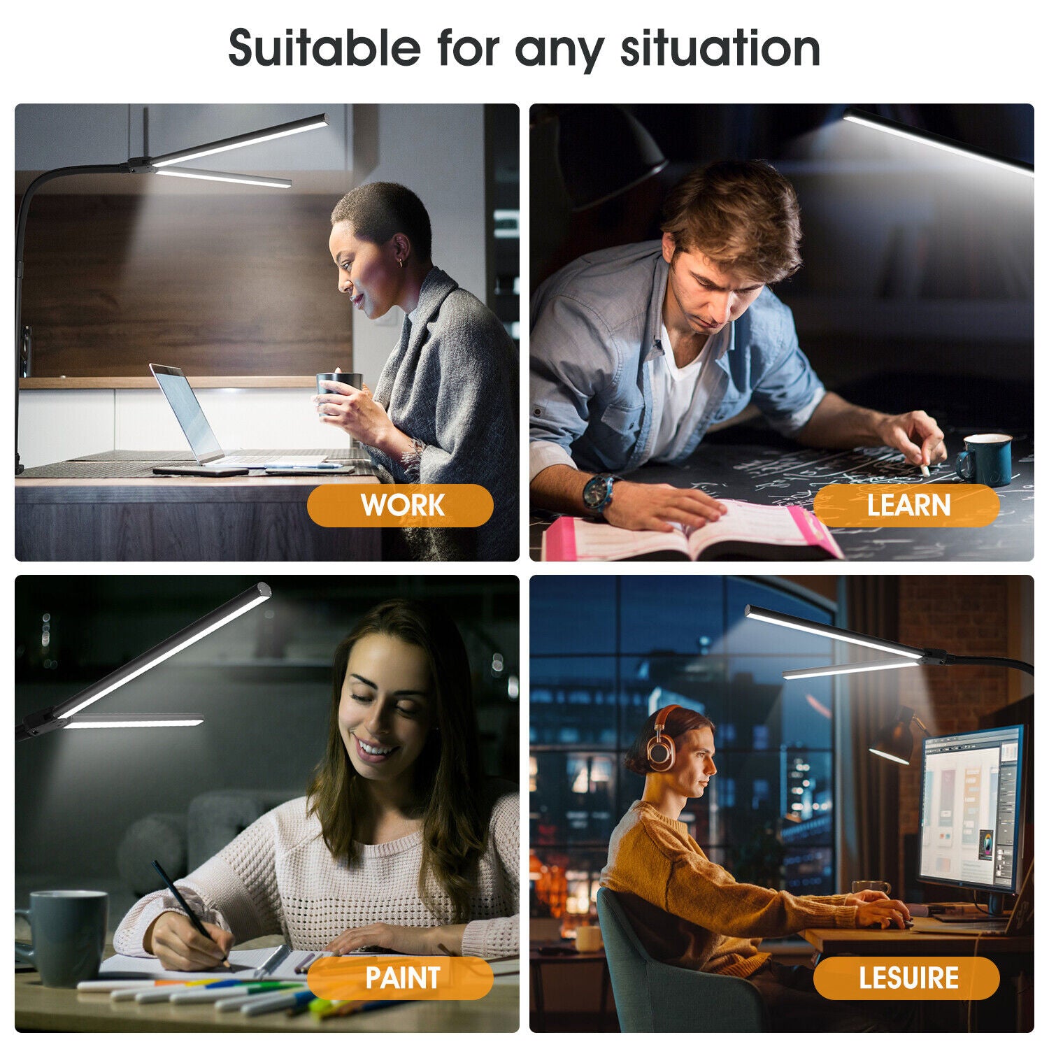 LED Double Head Desk Lamp 24W Foldable Reading Desk Light Dimmable Eye Caring
